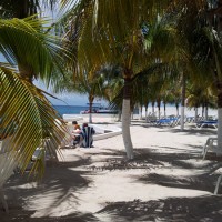 We stayed at Hotel Cozumel, an all-inclusive resort whose property sprawls up from the ocean across the street. Hotel Cozumel has 10 accessible rooms, all located on the ground floor of 1 building with balconies facing the large pool. The rooms are spacious with a balcony large enough for a couple of wheelchair users. A large sliding glass door leads to this area. If you have limited upper body strength opening it may pose a challenge. The room comes with 2 full beds at a great height for a transfer. Leading to the bathroom, a roll-under sink and vanity is well designed for a manual chair user but will be too low for the majority of power chair users. The hotel has remodeled to create a roll-in shower with a hand-held adjustable shower head. The room comes with a non-padded, no-armed shower chair. The most pronounced accessibility issue is access to the toilet. If you can stand to transfer, you are golden. Hotel Cozumel has installed grab bars. However, if your wheelchair is wider than 28 inches you will not be able to get right next to the toilet, you’ll be stuck about 6 inches away.