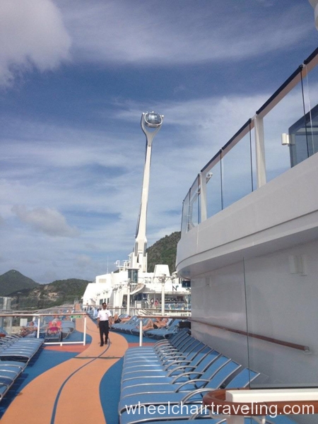 Anthem of Seas has its home port in Bayonne, New Jersey and can carry approximately 5,000 people. The Staff on Royal Caribbean cruise line go above and beyond for the handicap guests. I can’t say enough how they helped me accomplish this outstanding adventure. They have special lifts and strong staff to help accommodate all of us from start to finish.