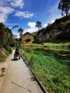 After skillfully wheeling down a couple of hills, I asked my friend once again laughing, “Where is the boardwalk you speak of?” It remained a running joke, and when we finally reached it, I chuckled teasingly, “Eureka! It does exist!” It was narrow with no railing, but a no-slip mat was in place, which was seen throughout New Zealand. It was my first real look into the wild of New Zealand, and my heart melted. The water was incredible shades of blue yet crystal clear; clean drinking water from the Blue Spring Putaruru that rises up from deep within the earth. White butterflies danced all around as ducks fluttered and dove in the waters. I’d never been anywhere else like this, and a part of me wanted to stay here for the remainder of my trip because I thought I had found the most beautiful place in New Zealand, but I was wrong. Every day was jaw-dropping to the point that the only words I said were “Oh my God,” and so when we got back into the car, I realized the dream had started, “…and this is only day one.” Sharon smiled, “And tomorrow we go kayaking through a canyon filled with glowworms guided by Lake District Adventures.”