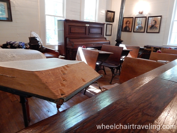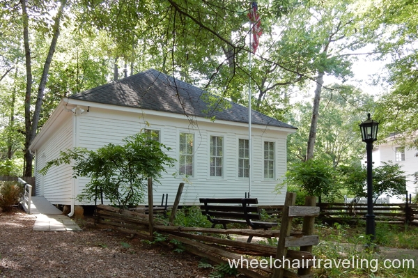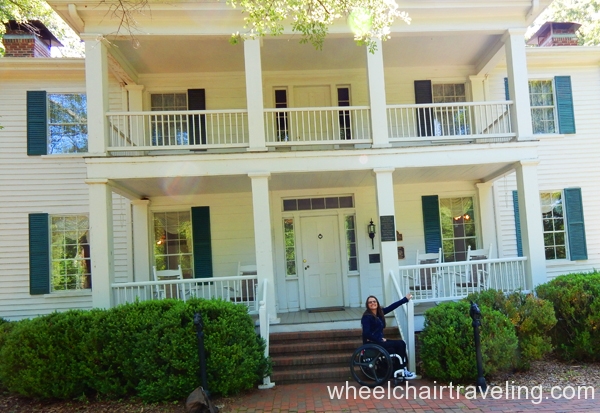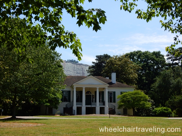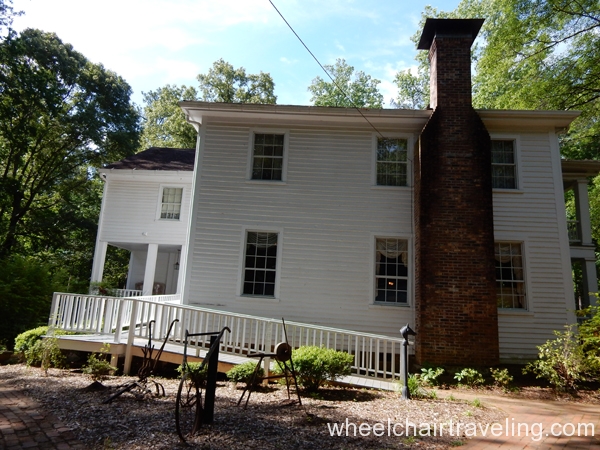 Stately Oaks Plantation in Jonesboro, Georgia is most famously known as being using in the blockbuster classic film “Gone with the Wind” and is located approximately a half hour from Atlanta. A handicap parking spot is closest to the entrance. Getting around most of the property is possible; some sections of the brick walkways were uneven. Ramps allow wheelchair visitors to see inside of the school and the ground floor of the plantation both with historical artifacts and movie memorabilia. A bathroom for visitors is available but is not wide enough for a wheelchair.