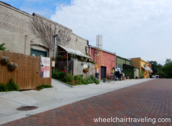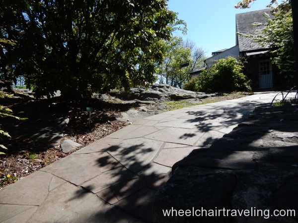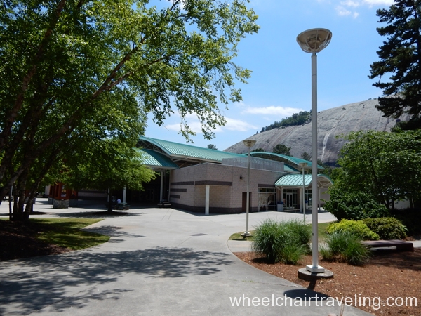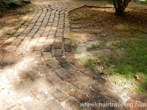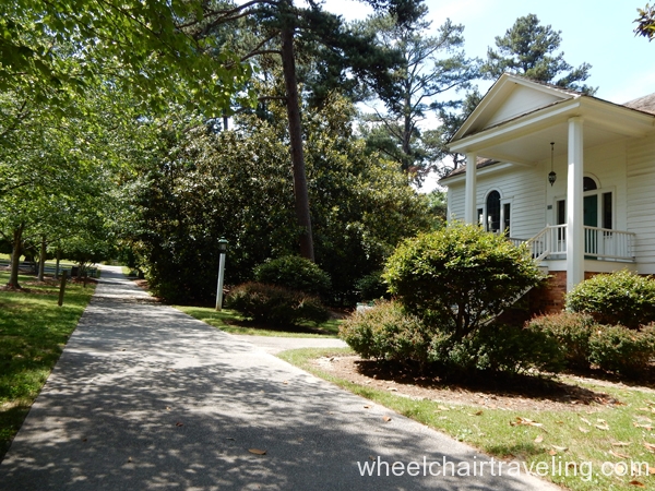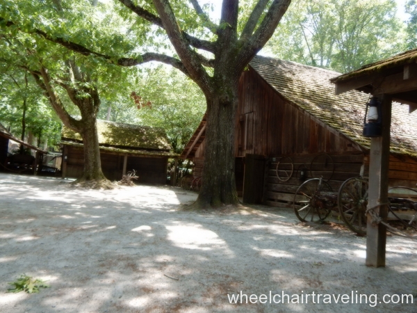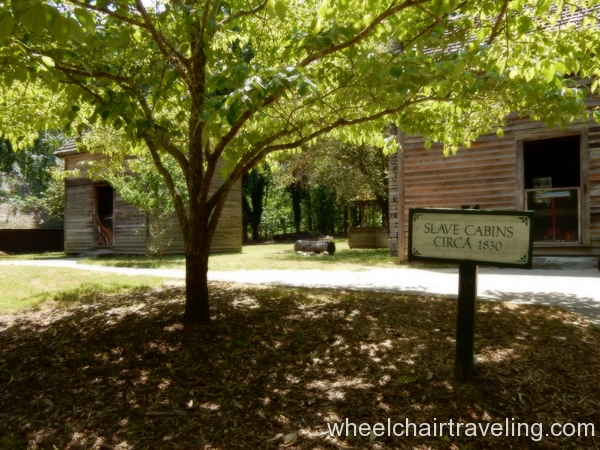 Within the park is the Antebellum Plantation & Farmyard and one can explore the grounds for a fee. The handicapped parking spaces are around the corner from one and only entrance. The entrance and exit requires traveling through the ticket office with long ramps. No other building at the plantation is accessible but no discount is applied. The pathways are paved, wide and relatively flat.
