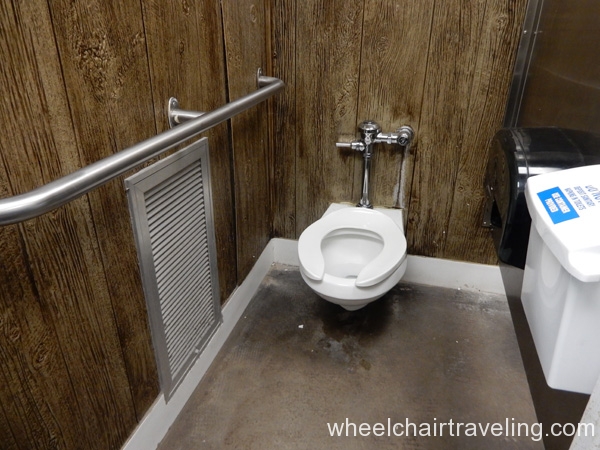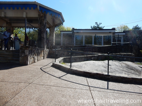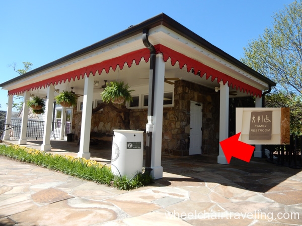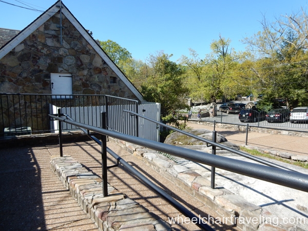 Enjoying the grand vistas views at the lookout point or on the outdoor patio of the cafe is a favorite among all visitors. The cafe has indoor and outdoor seating, but with the incredible view, almost all visitors prefer the patio. A few other little gift shops and cafes are on the way to the vista, and most had a ramp somewhere. Bathrooms overall are very narrow, but there is one large family-style, unisex bathroom near the first-aid station with grab-bars and a roll-up sink.