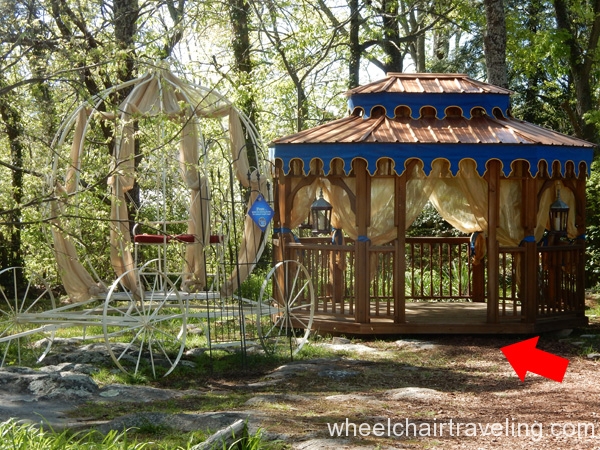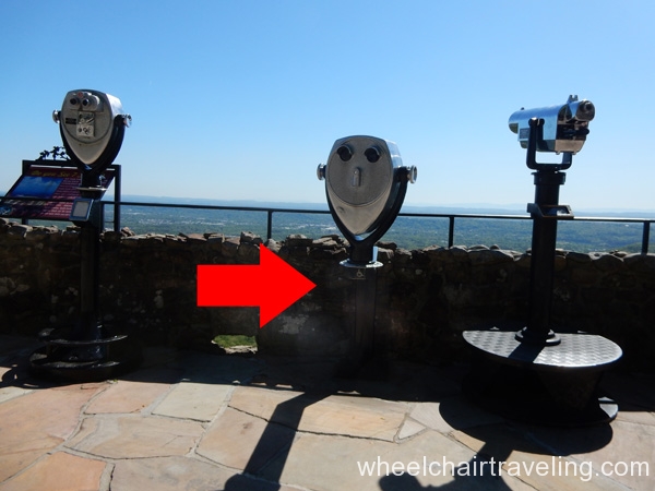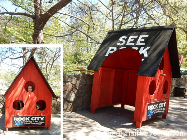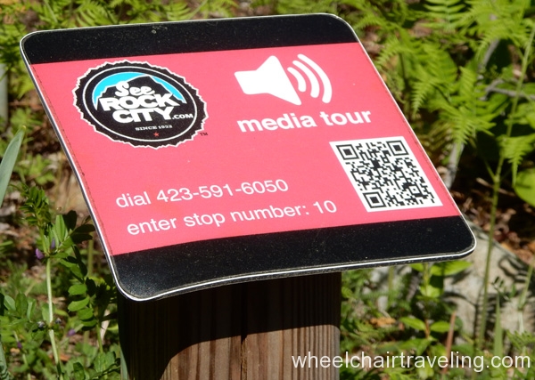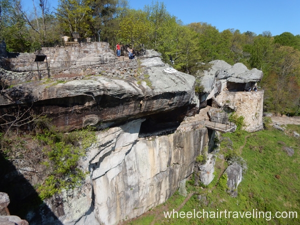 Some modifications have been made to bring more accessibility to Rock City, but it’s not entirely up to modern standards, which is why a discounted is given to those only able to do the ADA trail. The trail is a firm, barrier-free pathway with some sections made up of flattened cobblestones, so watch out for cracks. The two steepest ramps are at the beginning of the property and to the Lover’s Leap Overlook near the vista. Another ramp, at about a 2-degree grade, leads down to the large vista viewing area, which includes a binoculars that have been lowered.