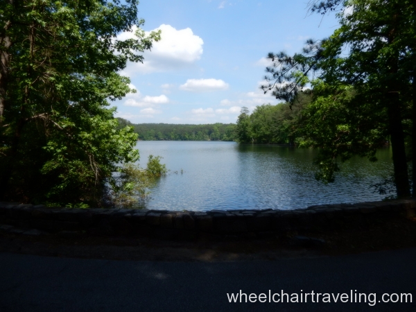 The park tram or shuttle is accessible and has a lift but is only in operation in the warmer months between March and October. Paved asphalt bike trails are all over the park with some long gradual hills so diving is recommended or taking the in-park tram with a wheelchair lift. The Scenic Railroad circles around the park’s perimeter and is wheelchair accessible. Duck Tours are also wheelchair friendly but you must call 770-413-5263 for reservations (same-day reservation ok). Down by the water is a scenic wooden covered bridge.