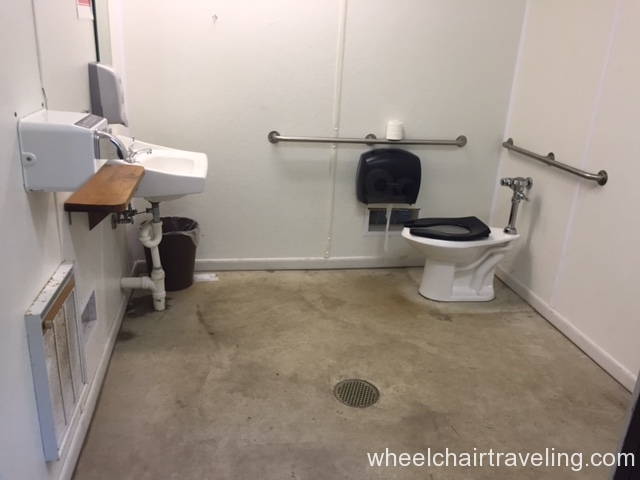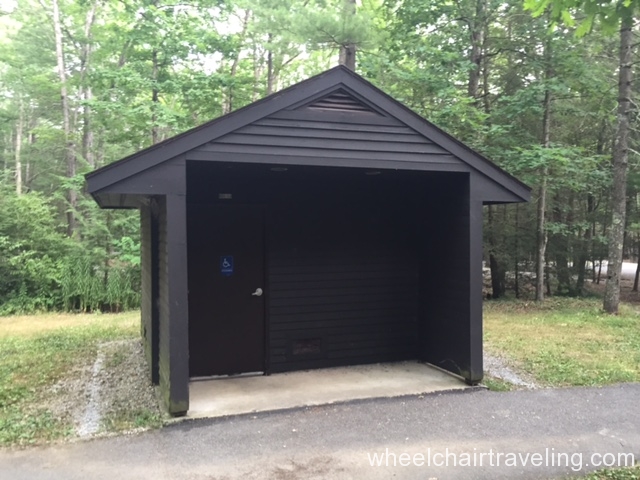 I tent camped for 4 days in July 2016. I was at site #180 which is designated handicap accessible. The site is paved and there is a handicap bathroom with roll-in shower (see images). I was issued a key and basically had a “private” bathroom the entire stay. Also, site #181 is designated handicap accessible and the bathroom is located between the 2 sites. Note, these are the only 2 sites in the campground that has this bathroom set-up. Paved sites tend to be reserved for RVs, but when I am using a tent, I look for RV sites. I do not “rough it” and my camp kitchen is bigger than what I have at home!