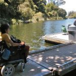 Resting on top of one of Livermore Valley’s hills is the Eagle Ridge Vineyard. The view of the surrounding hills, vineyards and Altamont windmills is absolutely lovely. The tasting room is locate inside a remolded barn with the floors made up smoothly paved cement. Getting around the barn was easy due to lots of maneuverable space. Right next to the tasting bar is a table that is a perfect setup for a wheelchair to roll right up and comfortably taste. Antiques fill up the room with some things being for sale others not, like old radios.