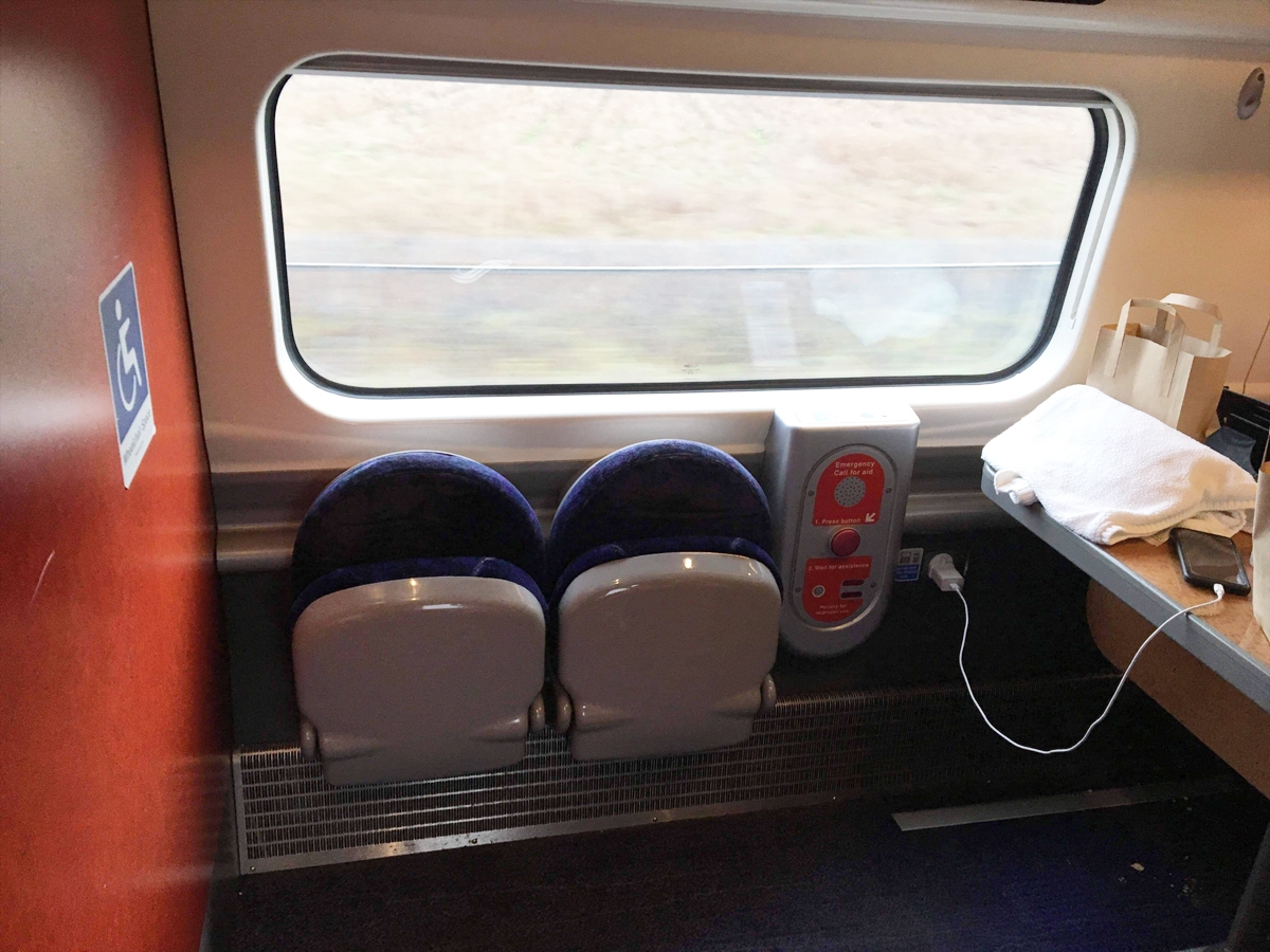 The number of wheelchair spaces per train depends on the train company (Virgin, Transpennine Express, Northern, ScotRail) and the number of carriages on the train (sometimes Transpennine Express trains have 4 carriages, other times 8). There are normally at least 2, often 4, wheelchair spaces per train. The spaces are big enough for a powered wheelchair, however, no restraints are provided. You can book a seat and transfer out of your wheelchair if you prefer, although your wheelchair will then remain in the wheelchair space. In each carriage where there is a wheelchair space(s), there is an accessible toilet, with automatic doors, grab-rails and room to side transfer (normally to the left), although again this depends on the train and train company.
