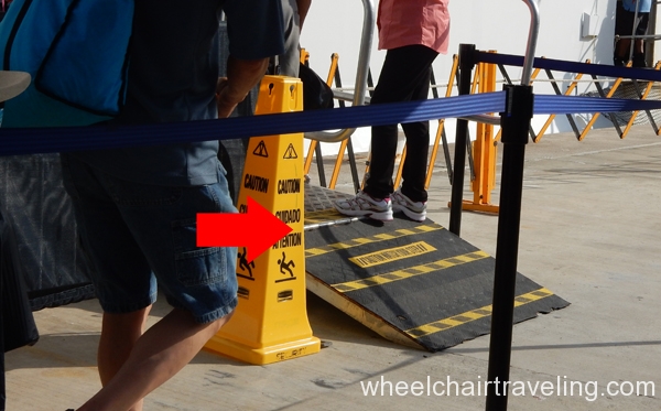 No matter the cruise, there will always be stops, as this is the design of a cruise, and a number of barriers may restrict or even prevent some people with wheelchairs or scooters from getting off the ship. For starters, depending on the ocean’s tide and the ship’s equipment, the steepness of the ramps at the docks can vary drastically, which is more of a problem for manual wheelchairs. Sometimes these ramps are curved or have transitions with protruding hardware, which may create a small barrier for some.