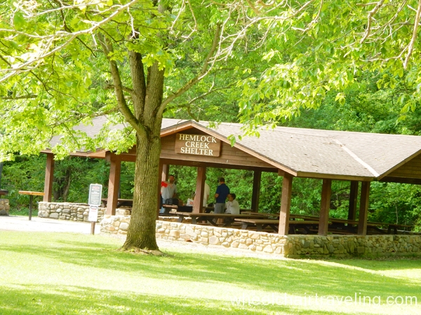 One other picnic area that is particularly nice and accessible is the Ledges Shelter. What makes this picnic area special are the two stone fireplaces under the shelter. A large grill is outside. Altogether there are about 15 picnic tables inside and outside of the shelter. Accessible parking and bathrooms are available for visitors.