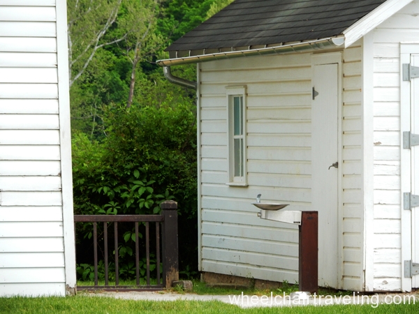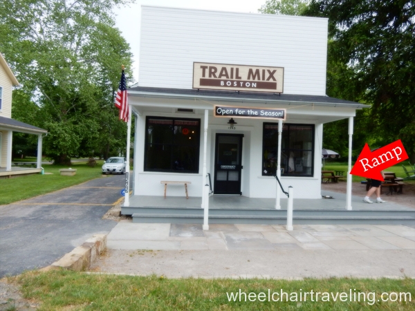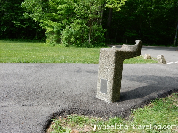 - Boston Visitor Store is located centrally in the park, about a ten-minute drive from the Peninsula Depot Visitor Center with just a couple of accessible parking spots. This visitor center has a small museum and information desk for questions, but no automatic doors. Just outside the main building is a paved pathway that leads to the bathroom, which has an accessible stall (with lowered hooked in women’s stall), a roll-up sink and outside is a modified drinking foundation.