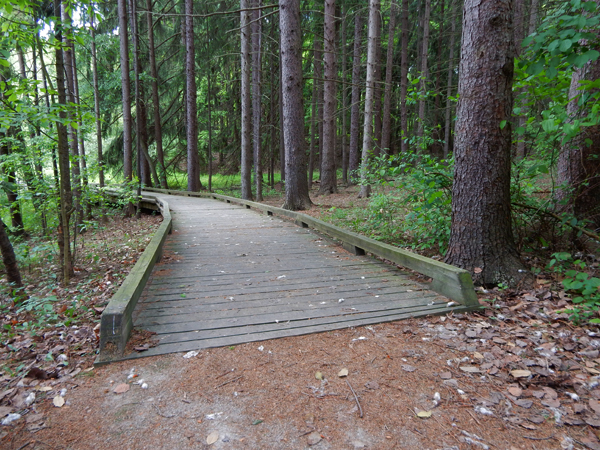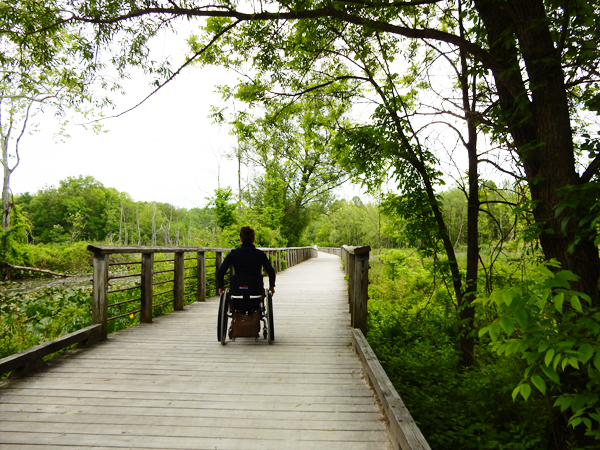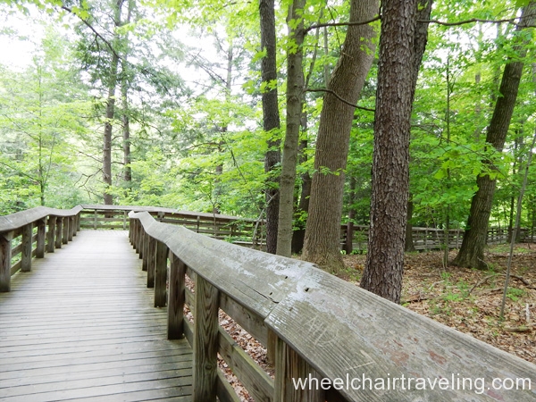 - Makeup: The paved parking lot leads to a short section of the trail that is also paved asphalt. The main portion of the accessible section is a boardwalk with handrails.