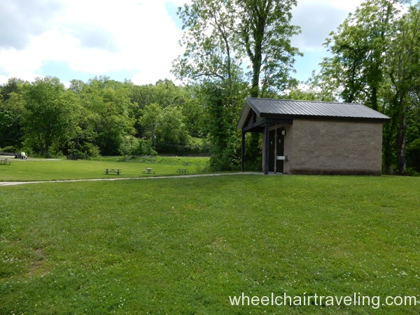 You will find dozens of picnic table areas scattered throughout the park, many highlighted in the areas above. Some spaces are designated for groups and often require a reservation, but many picnic areas do not. Every major picnic area has options for shaded or partially shaded tables, though there are some with full sun exposure. At these Cuyahoga Valley picnic shelter areas you will also find access to paved parking spaces and vaulted or pit-style toilets. Many picnic tables have a raised cooking grill but not all. Many modified drinking fountains were observed at the major picnic areas. Smaller picnic table areas also exists and usually included access to parking but an accessible route to reach the tables was rare; many had barriers or required traveling over grass.