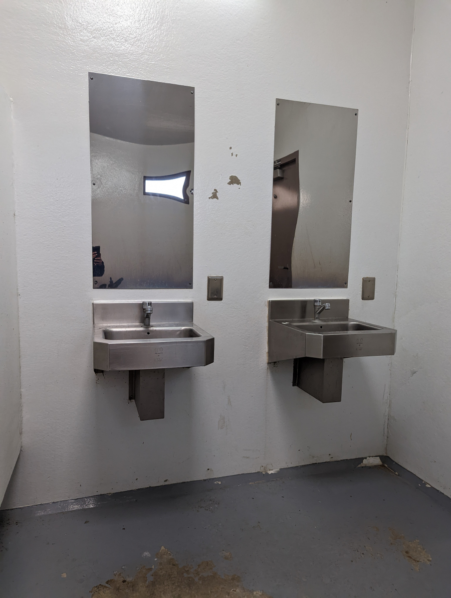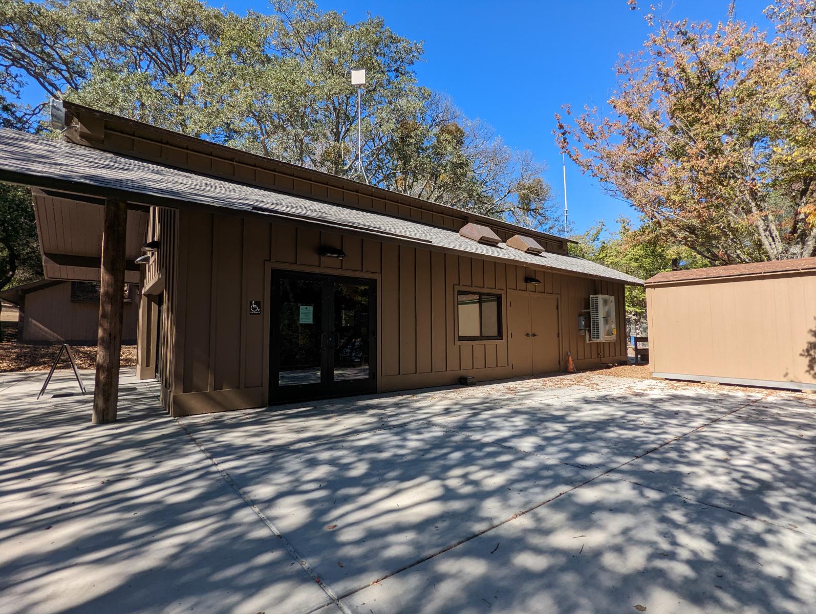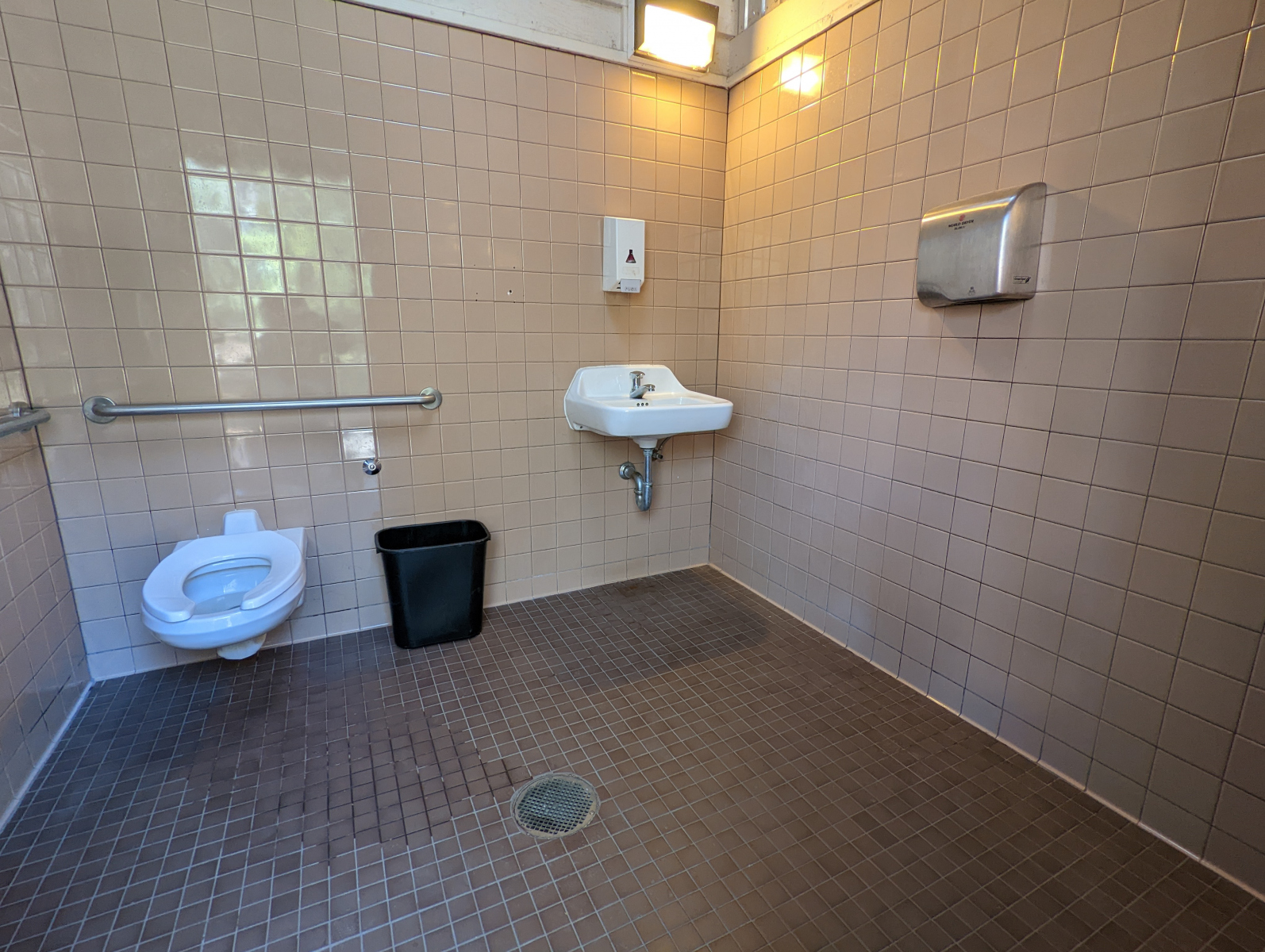 - Toilets: Two wheelchair accessible stalls with grab-bars and flush toilets along with roll-under sinks are located in a building near the Visitor Center. One regular stall also grab-bars.