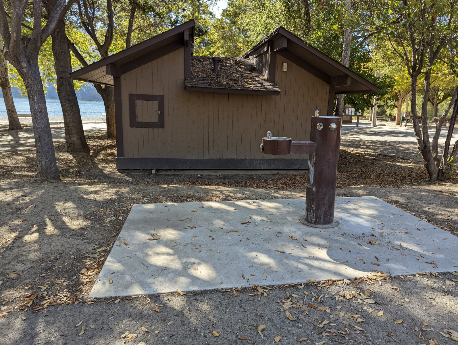 - Water: An outdoor shower rinse-off station is on a paved surface near the Visitor Center as well as the staircase at the southern end of the parking lot. A drinking fountain is on the West Shore Trail when headed down to the lake from this end.
