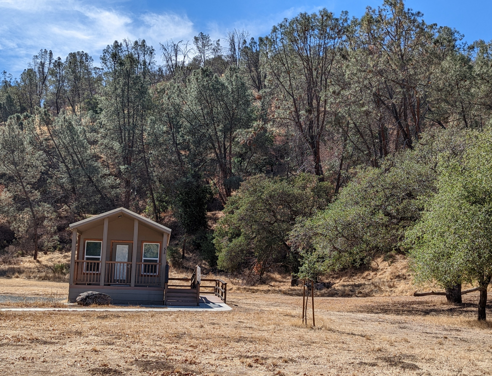- Tent Cabins: #55 and #56 are wheelchair accessible and can accommodate a total of eight people each. A picnic table and campfire are outside.