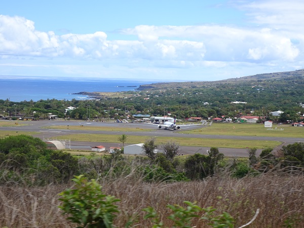 There are only a few selected flights that go to and from Easter Island, and we arrived on the earliest flight. To fly to Easter Island was about a 6-hour-long flight from Santiago, Chile. Getting off the airplane was not as typical as it is in the States, they had a large folding wheelchair that five people carried us downstairs. The airplane did have an aisle chair aboard for bathroom use as well.
