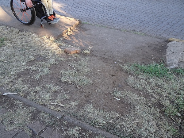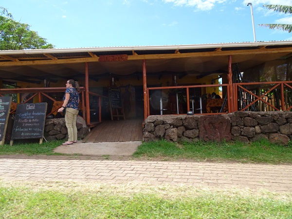 Wheelchair accessible bathrooms were scarce. The airport has one, and our hotel had another, but since Easter Island is so small, we could always return to the hotel when needed. At the popular historical site, Centro Artesanal Rano Raraku, we found another bathroom that was doable for a small manual wheelchair. It was just large enough to get the wheelchair in and close the door, but no grab-bars. The entry to the bathroom was about 26 inches. There were tree roots in the pathway as well. This site also has a little arts and crafts market as well as a small restaurant that only serves lunch. This site was surprisingly accessible with barrier-free pathways to and around the Moai heads.
