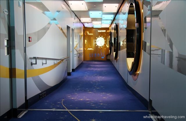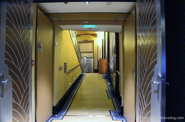 The Disney Fantasy has been a ship I’ve wanted to sail on since cruising on the Magic. I had heard many wonderful things about it and being a Disney nut, well, it was just something I had to do. Overall, the ship itself did not disappoint. Public areas, lounges, and dining venues had plenty of space for my wheelchair. The Staff & Crew were very friendly and willing to help. Doors to the outside decks are automated, elevators are plentiful and I noticed lifts around a couple of the pools. The lone issue I had with the ship was the inclines in the hallways around the entertainment venues and lounges. Although the inclines aren’t very steep, I found them challenging in some places because of the carpeting. Again, another obstacle I wasn’t going to let ruin my cruise.