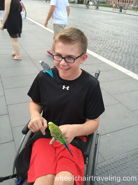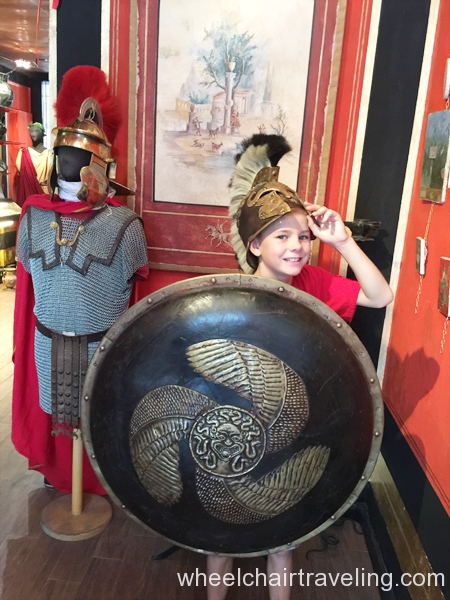 I bought a sword in Rome and it was an exact replica of a real roman sword. The name of the shop I bought the sword from was called ARKEOS, it is very close to the Forum. It is on Via IV November next to the sandwich shop Subway. ARKEOS also has roman Jewelry and roman armor. Tyler and I had a blast there! Also, It was so fun to watch the street artists create their paintings right there on the sidewalks of Rome. There were also performers that had live animals, like birds. Some of the birds sat on our shoulders. I’m glad we had time to stop and watch.