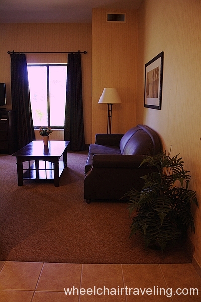 The property was set up wheelchair friendly. They have a lift into the spa but not the pool. Parking close to the room was a plus. I would stay here again if I am going to be in the Truckee area.