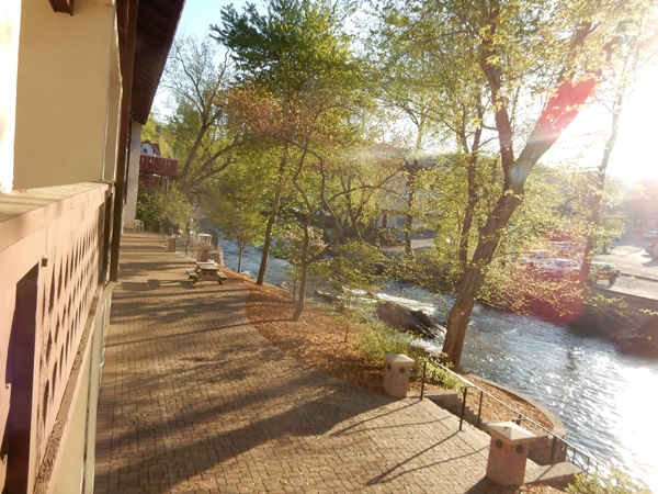 - Walkway: One is directly behind the hotel along the river.
