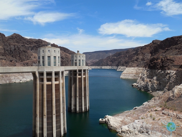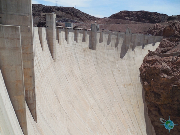 The creation of Hoover Dam, which aimed to control the Colorado River, was a monumental engineering accomplishment that set a precedent for future large construction projects. Half of the dam is in the state of Nevada and the other is in Arizona. Two clock towers can be seen on the dam with both state’s current times displayed.