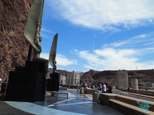 The exhibit level of the Visitors Center has information, audio, pictures, and models of the Hoover Dam and its surroundings. The observation deck of the Visitors Center has less information but offers a great view. An accessible restroom is also found in the Visitor Center as well as right outside the parking structure. Across from the Visitors Center are large bronze statues named the “Winged Figures of the Republic,” and a ramp on the right side allows for a closer look. Behind the statues is the Old Exhibit Building which is now used to educate visitors about the Colorado River and the dams and reservoirs coinciding with it.