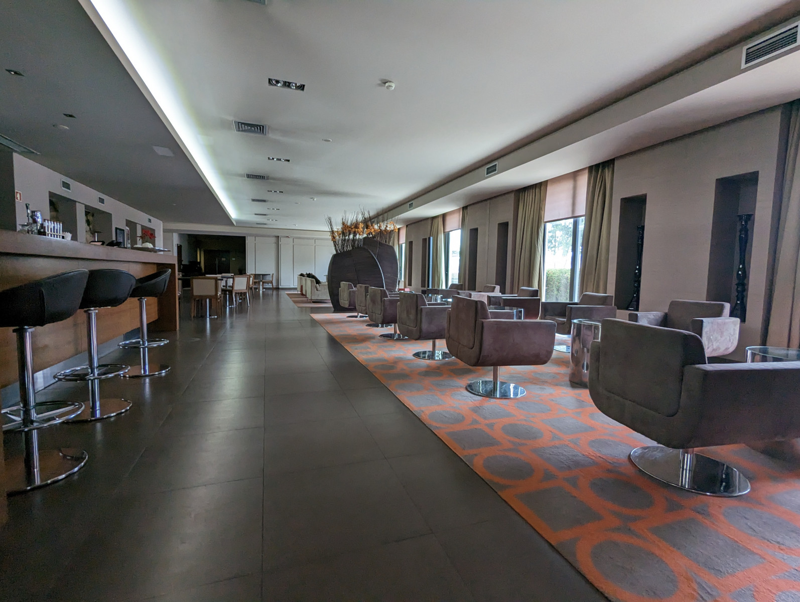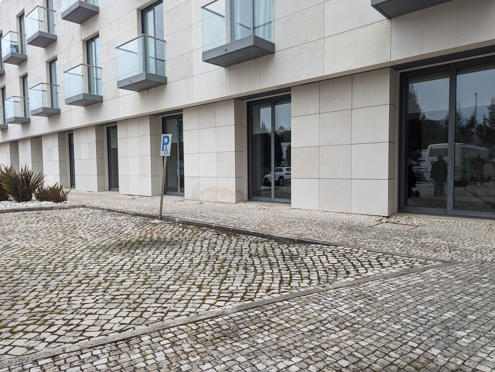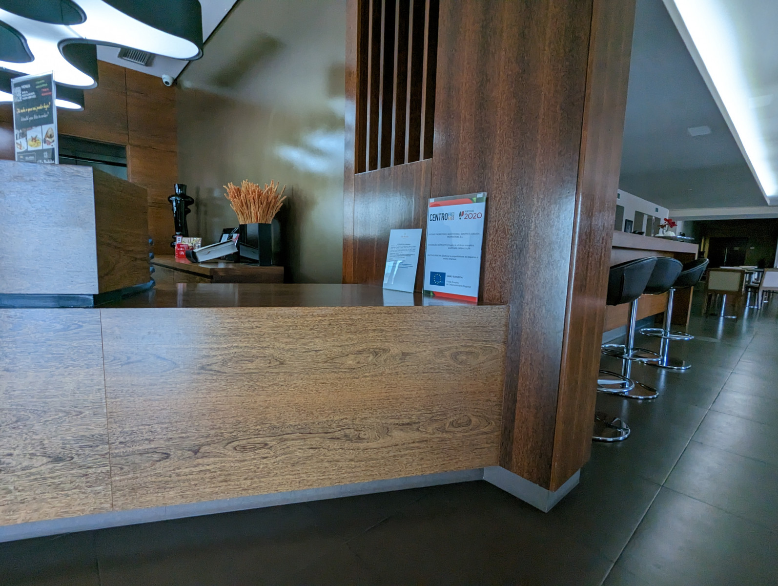 Not every amenity and space is wheelchair accessible at the Hotel Villa Batalha, but enough may make it still work for you. One handicapped parking spot is in front of the hotel and another across the street. Small cobblestones are in front of the hotel where a ramp provides access inside to two elevators to the rooms; the elevator on the left side is a little large than the other.