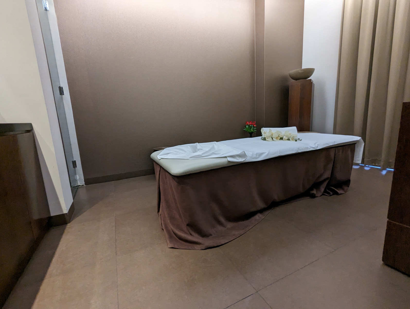 Getting into the sauna is not possible due to a step, but the steam room is barrier-free with some open general space, but no designated space for a wheelchair. If looking to get a massage, the spa has a table with an automatic table that can adjust heights.