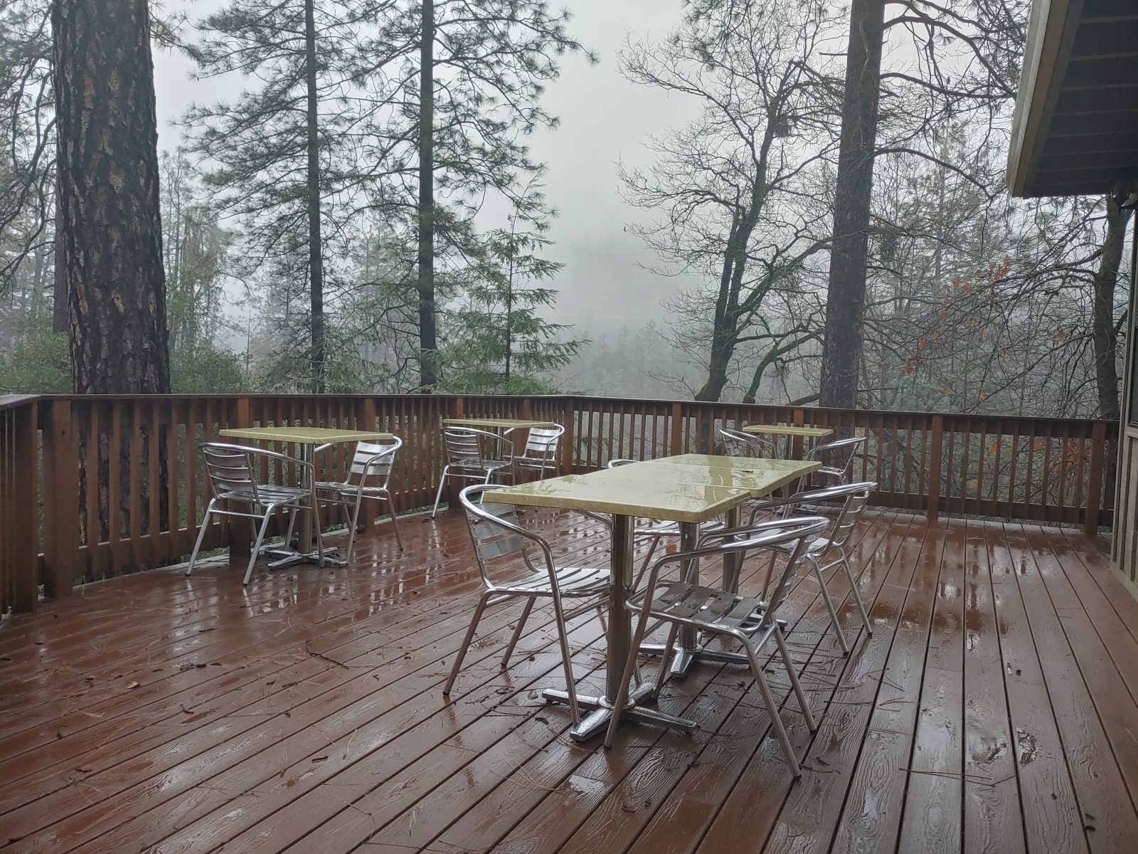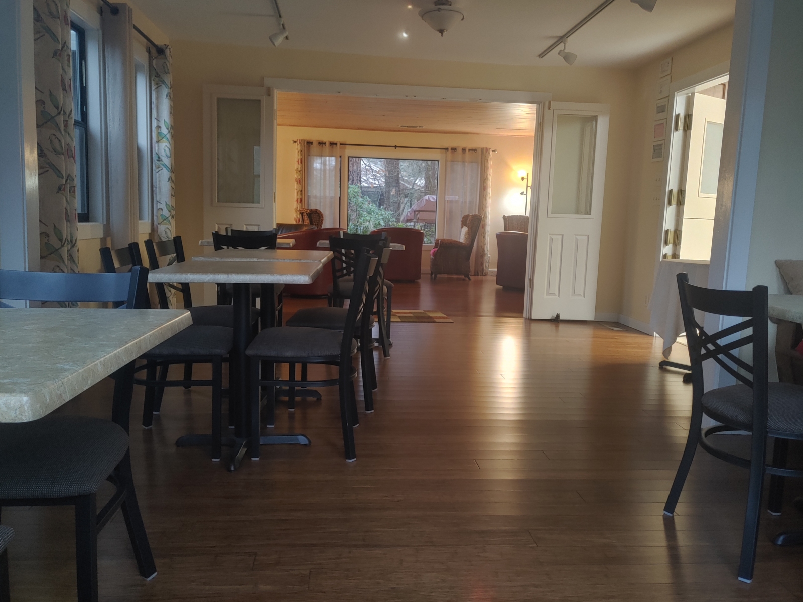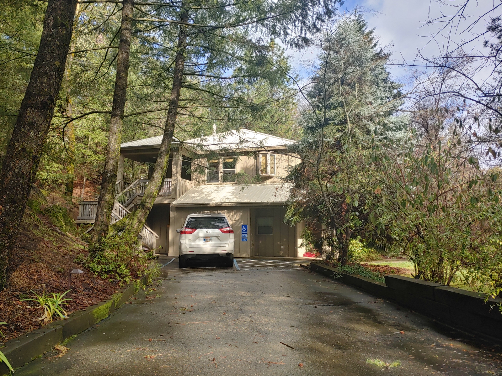 The one ground floor room in the main building, named “Blacktail Deer” has been modified for wheelchair access. A designated handicapped parking spot is located just outside. A couple of other rooms are located on the upper level.