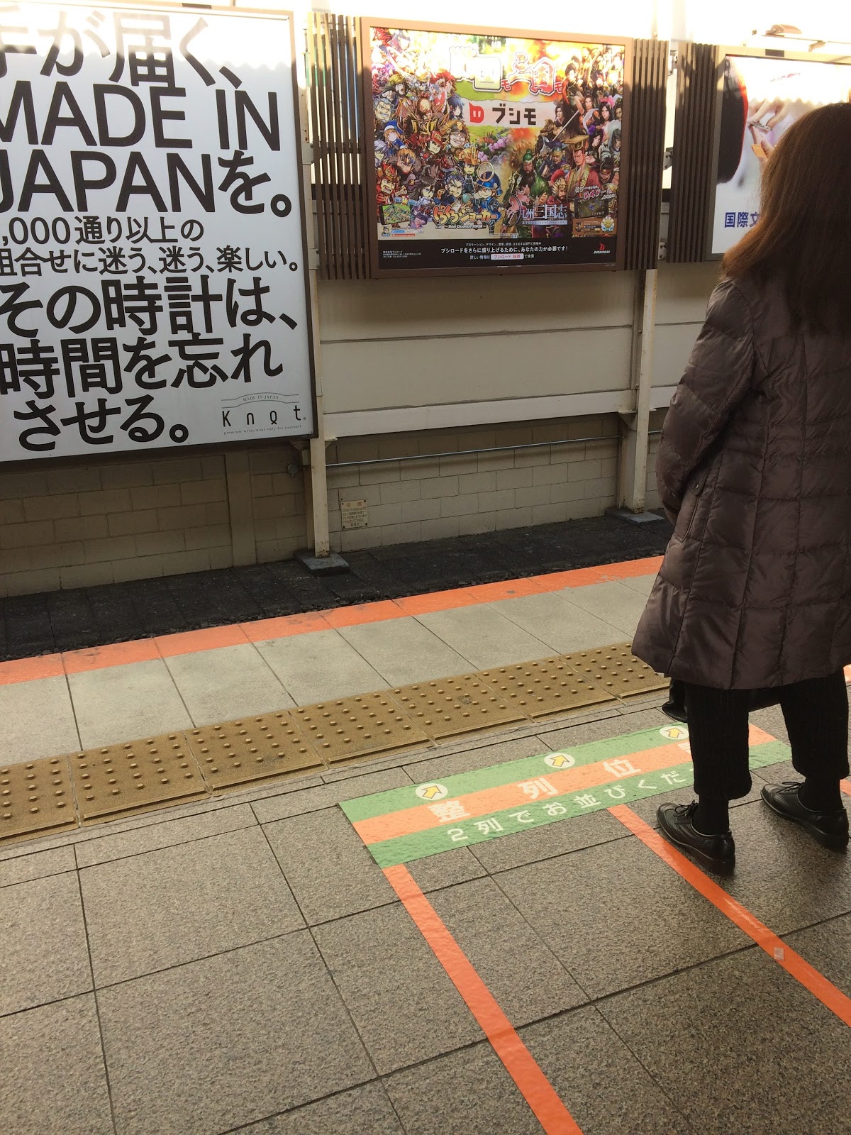 As society changes, much emphasis is being put on accessibility for all. Some terms you will hear in Japan are “Universal Design” and “Barrier-free” to indicate accommodations for people with disabilities/challenges. Many stations are now equipped with elevators that lead to the platforms, and if you call ahead/ask at the ticketing counter, a staff member will escort you to the train. Most train platforms have yellow bumps at the end to assist visually impaired passengers. The orange lines indicate where to line up while waiting.