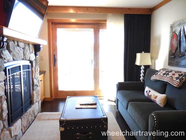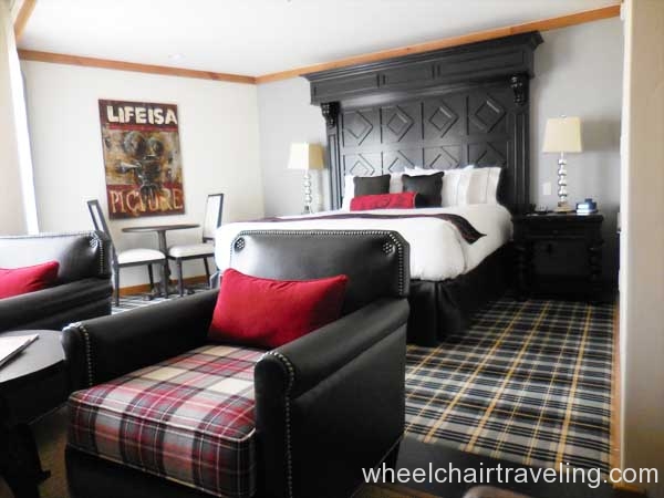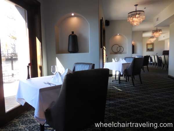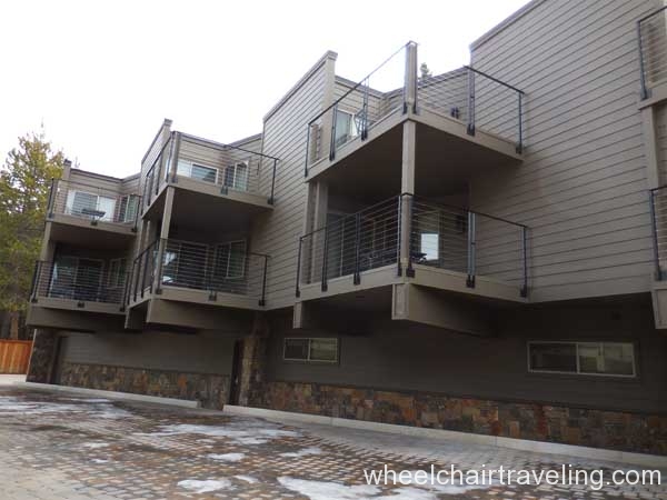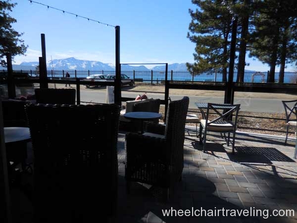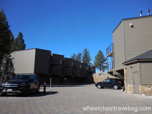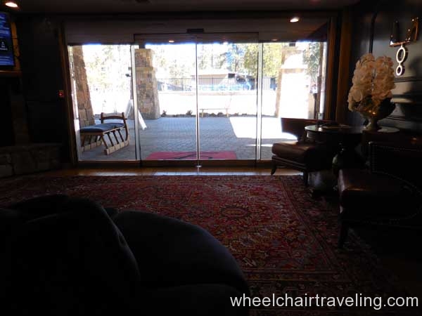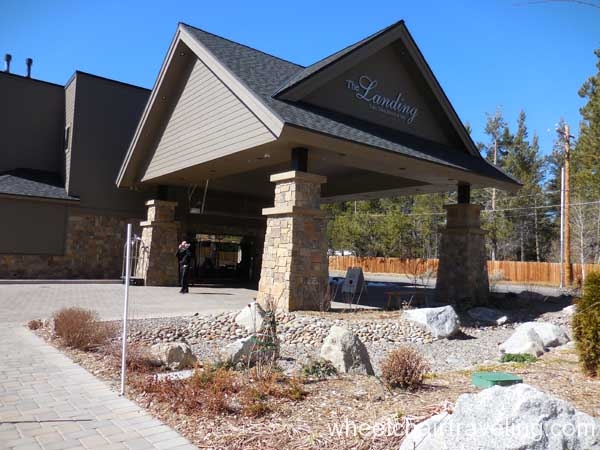 The Landing Resort is a luxury, boutique hotel with fine dining and spa services on a lake-front property in South Lake Tahoe. Valet is included with your hotel stay but not required. Two handicapped parking spots can be found closest to the main entrance but other handicapped spots are statically placed closer to rooms. Upon arrival, guests are greeted with the offer of champagne and led inside for check-in.