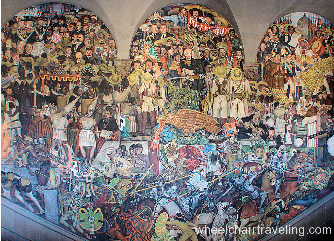 On your way back to Mexico City from the pyramids, stop by the Basílica de Guadalupe. This religious site comprises four chapels, each representing one of the Virgin of Guadalupe’s apparitions. The Basilica includes chapels built in different eras, each offering a unique experience. The two main chapels are wheelchair accessible: the 1970s modern chapel and the older one from the 1800s. Both are architecturally spectacular and steeped in history. - National Palace