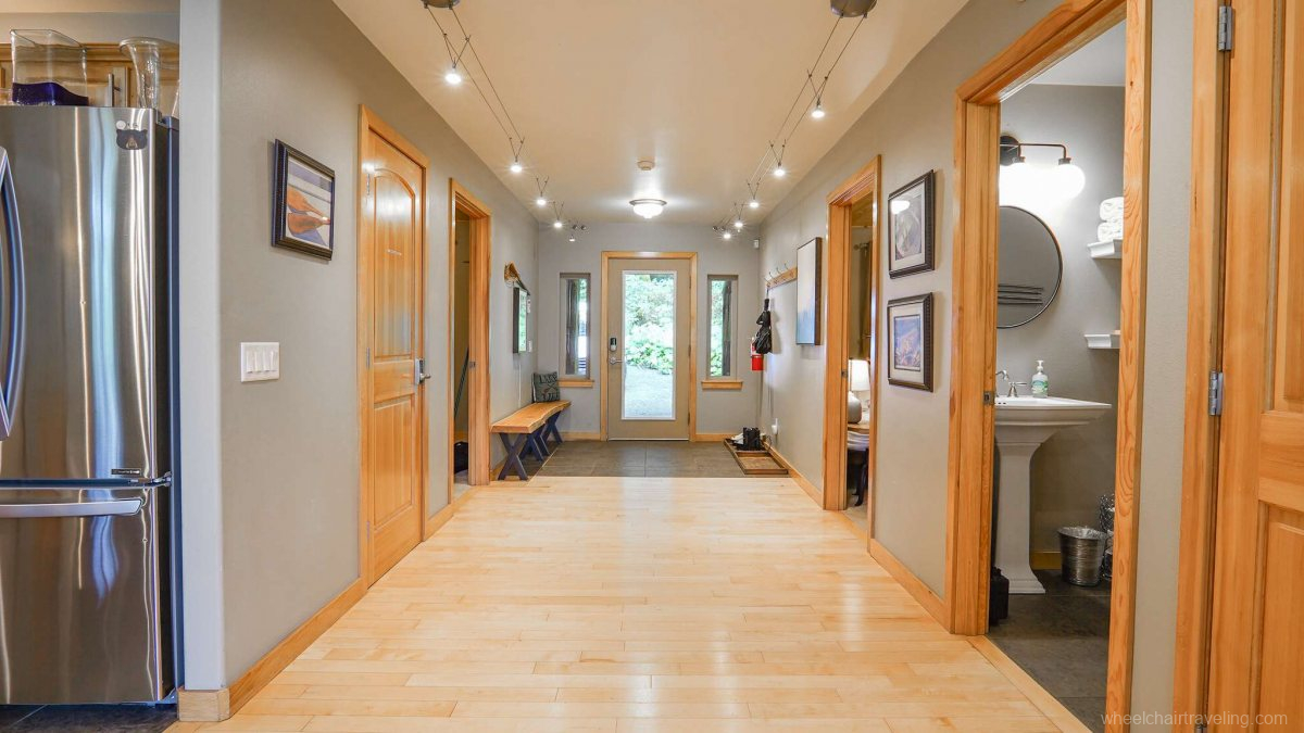 - Step-Free Entry and Single-Level Living: The main floor of the chalet is entirely accessible, featuring step-free entryways and wide doorways that facilitate easy movement for wheelchair users.
