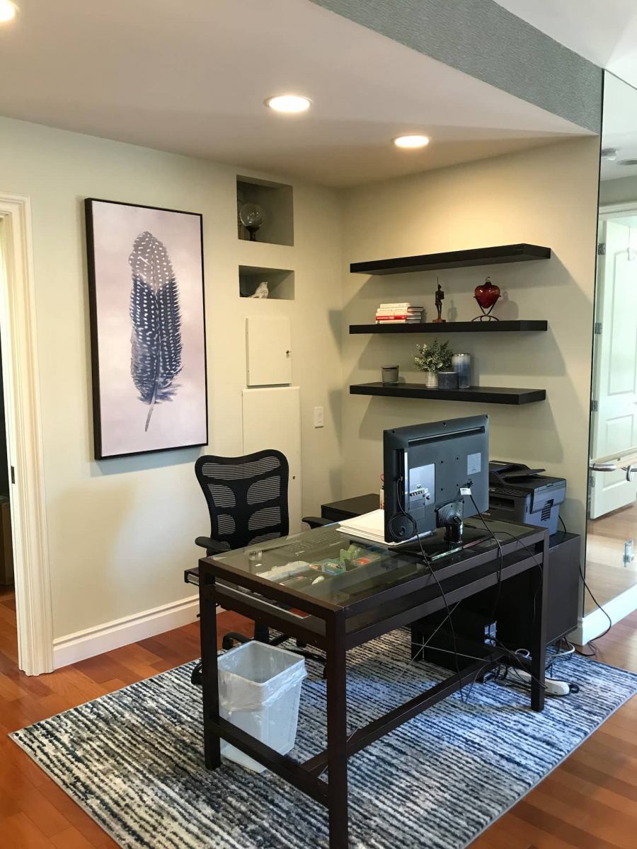 The ambiance of the home is light and airy for executive stays and families for up to 7 guests. To start, the home is barrier-free. There are no curbs, steps, or stairs to get to the entrance, and the path through the entryway is flat. It is a multi-story building, but both the front door and unit entrance have no curbs, steps or stairs. Doorways are least 32 inches wide, and in some cases 34.5 inches wide, with grab-bars installed in the hallways. Some lighting inside the home is controlled by remote. The HVAC system controls are not lowered.