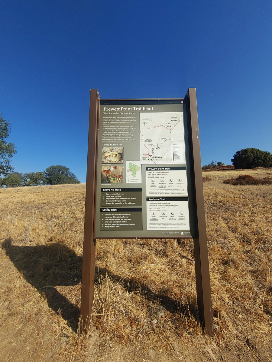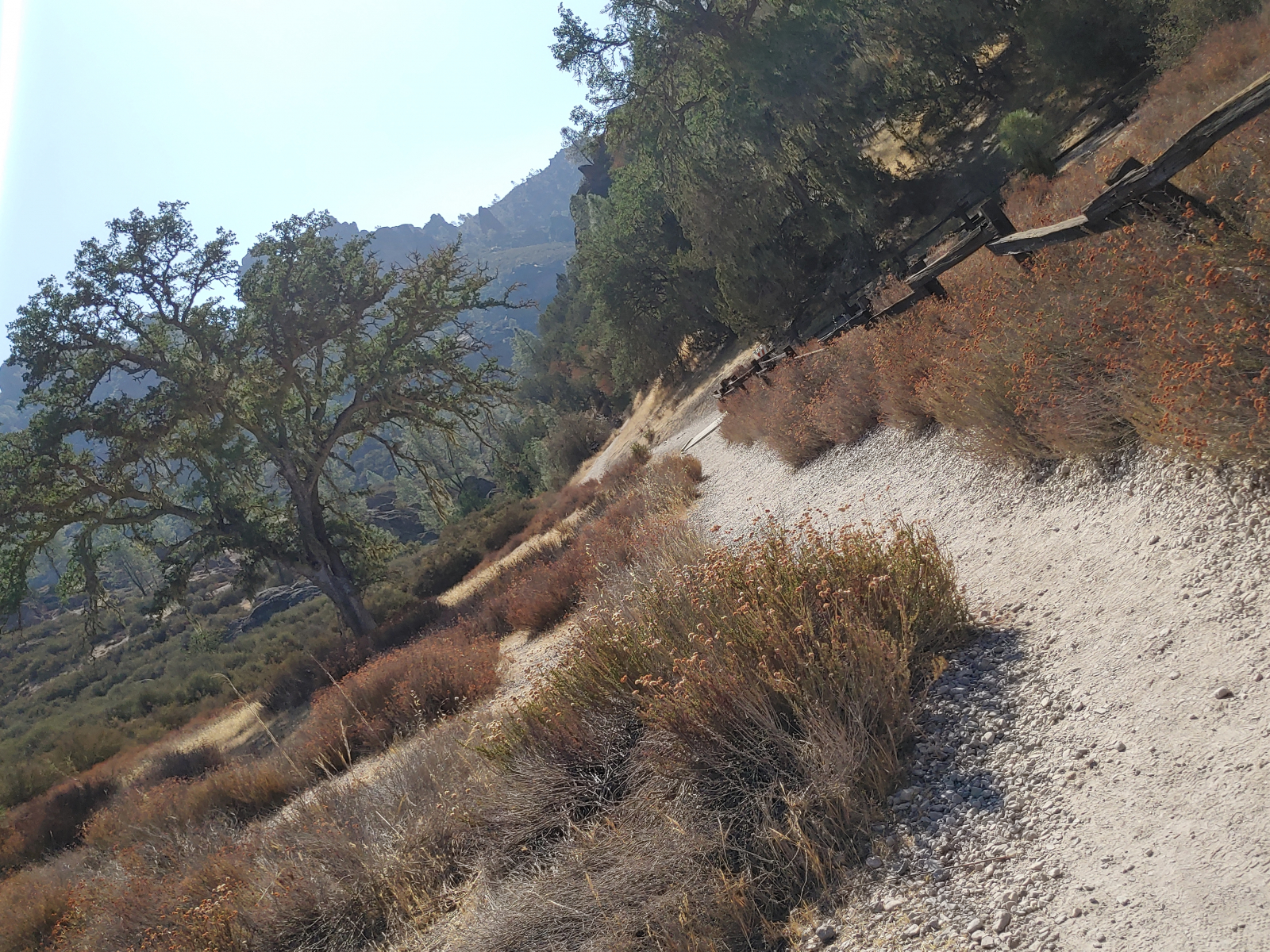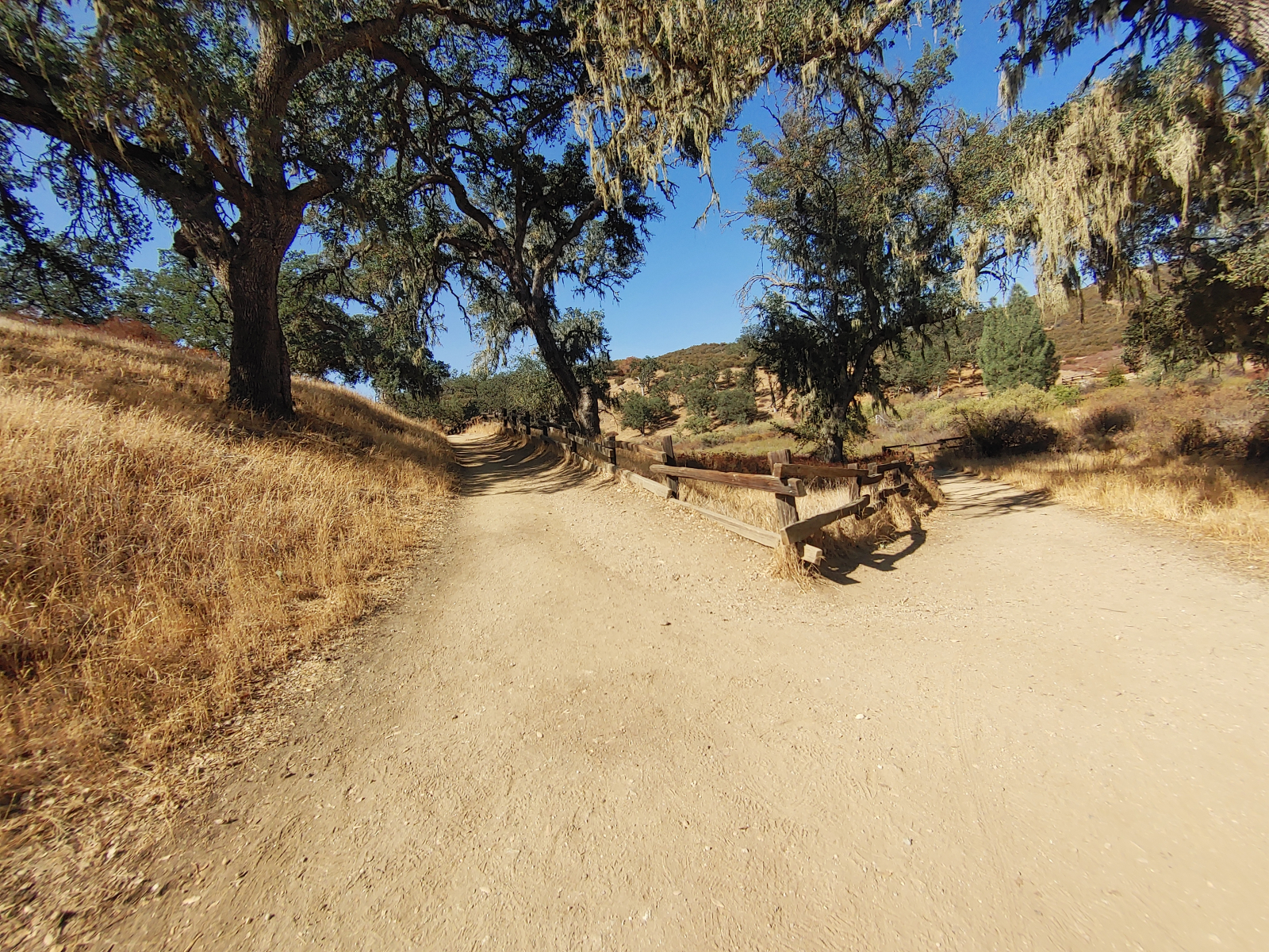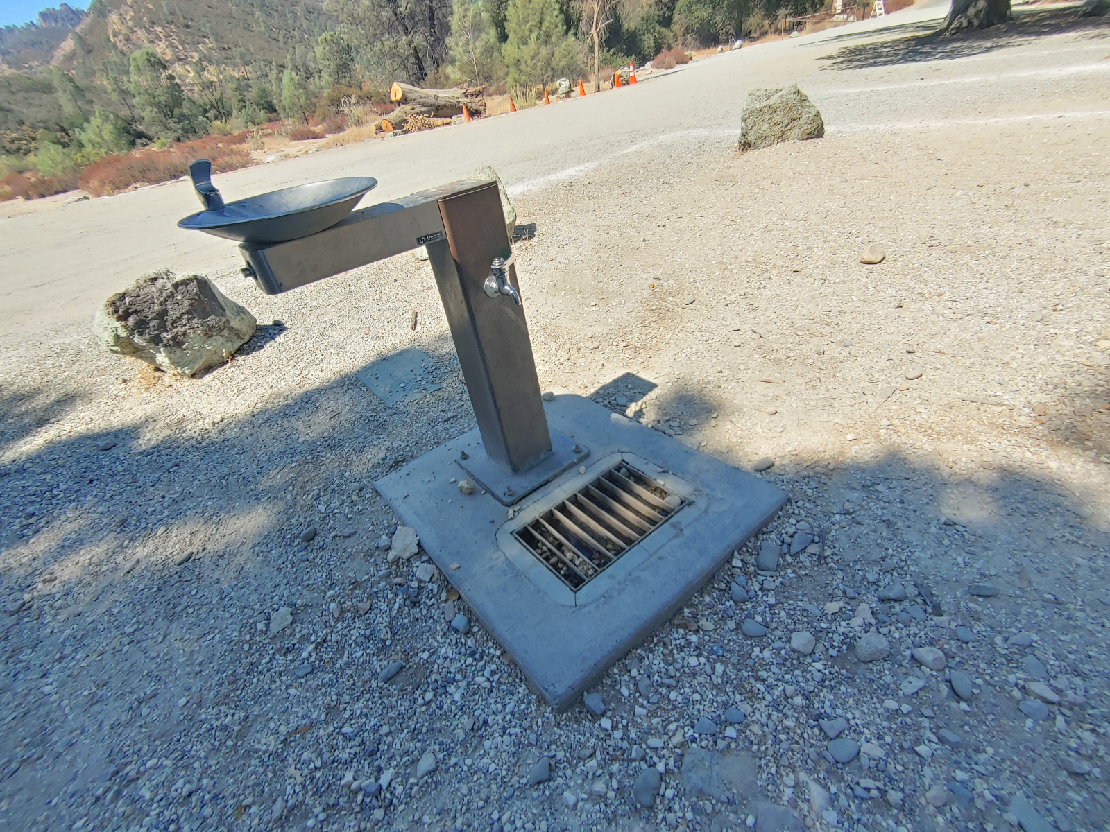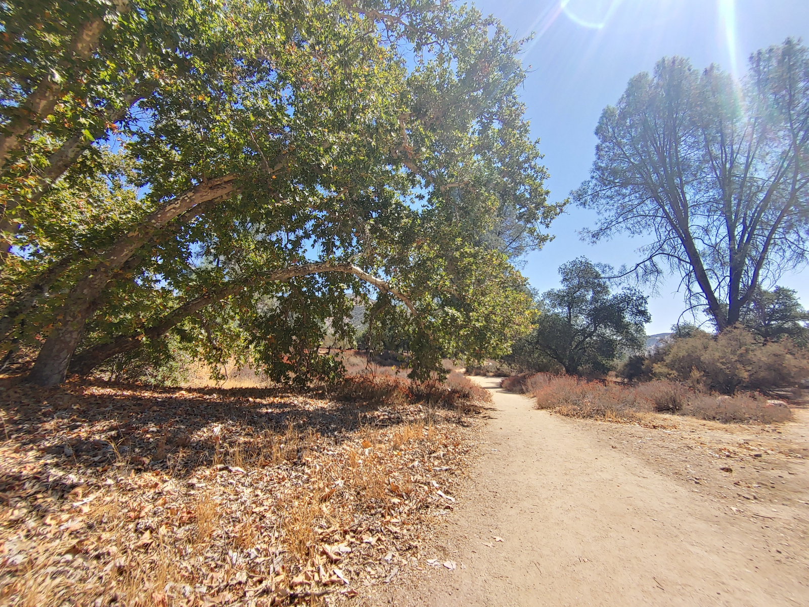 The east side of the park is in the valley of the mountains. Following the Pinnacles Parkway Road with views of the peaks and a dry creek bed is the one-way Sycamore Valley Trail with a hard-packed dirt surface. Most of the trail is exposed to the sun, though a few parts are shaded by nearby trees. Look out for soft sand or rocky spots. When the trail veers off this main road towards Bear Gulch, it becomes inaccessible; the Bear Gulch visitor center is also inaccessible. Instead, continue hiking along the dry creek on the Bench Trail from the Manzanita Parking Area.
