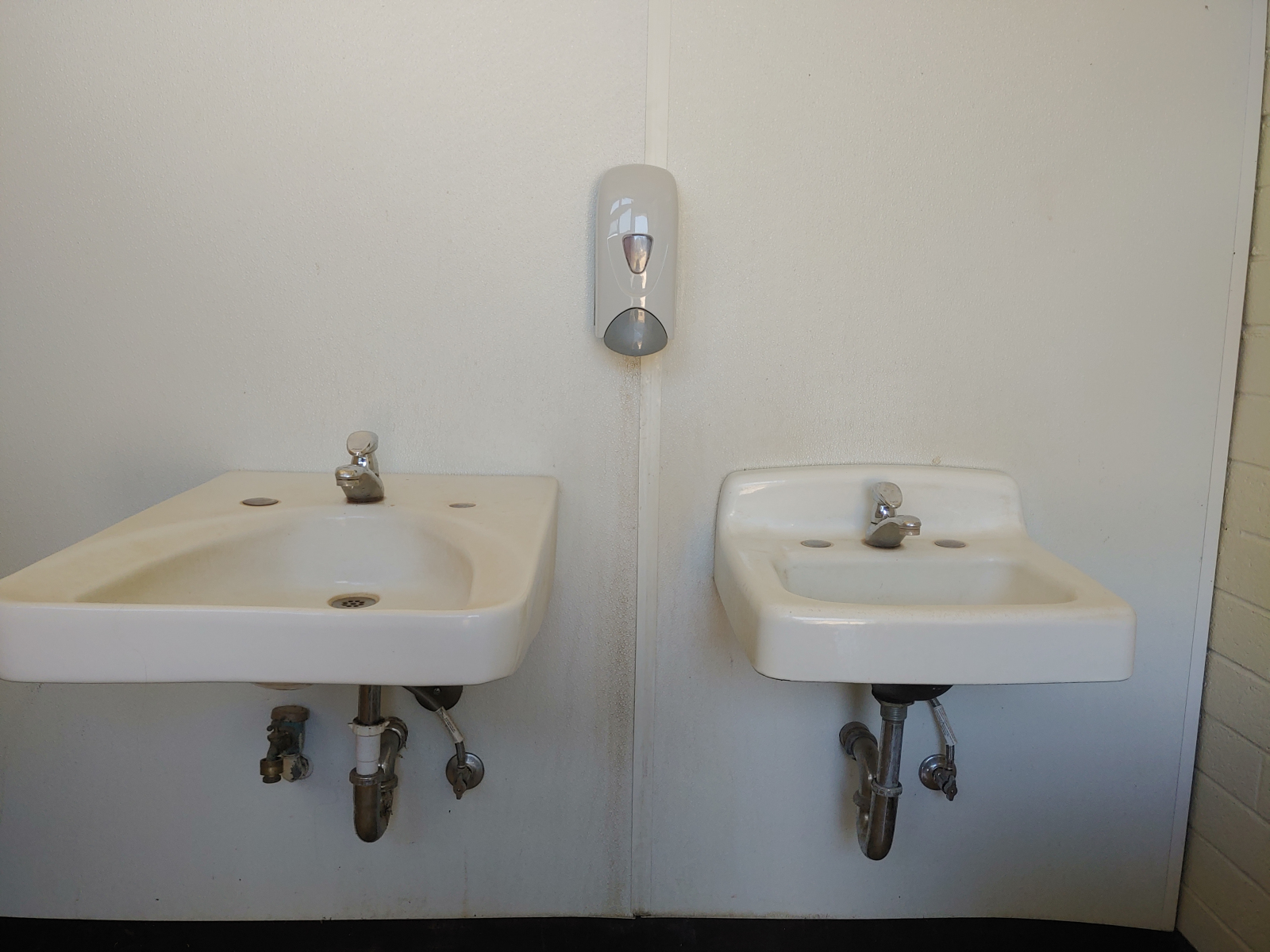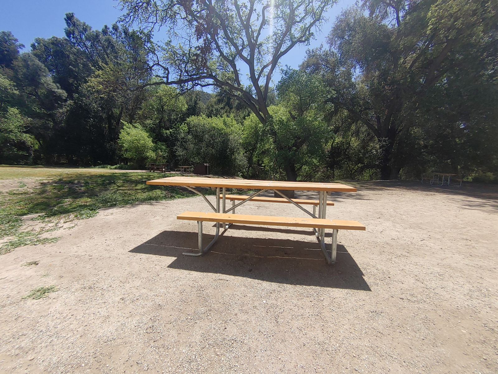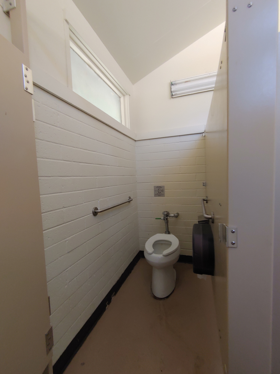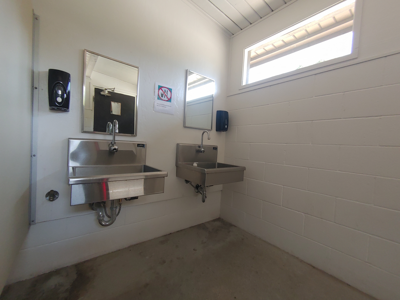 This area has accessible parking and access to a drinking fountain and observation telescope. The picnic area is on a hard-pack dirt surface with no modified picnic table, but deepening on height, some people may be able to fit under the table at the end. The flush toilets here are not wheelchair accessible, so a portable toilet out-front has been provided.