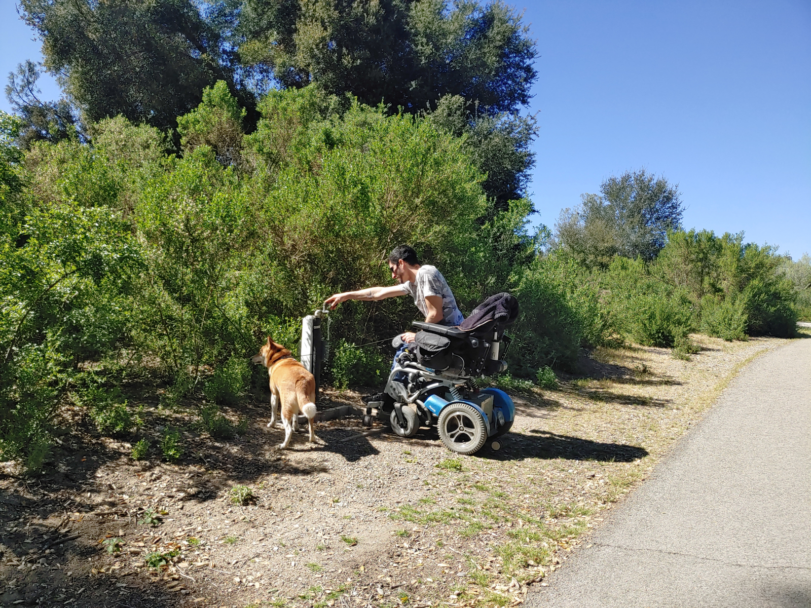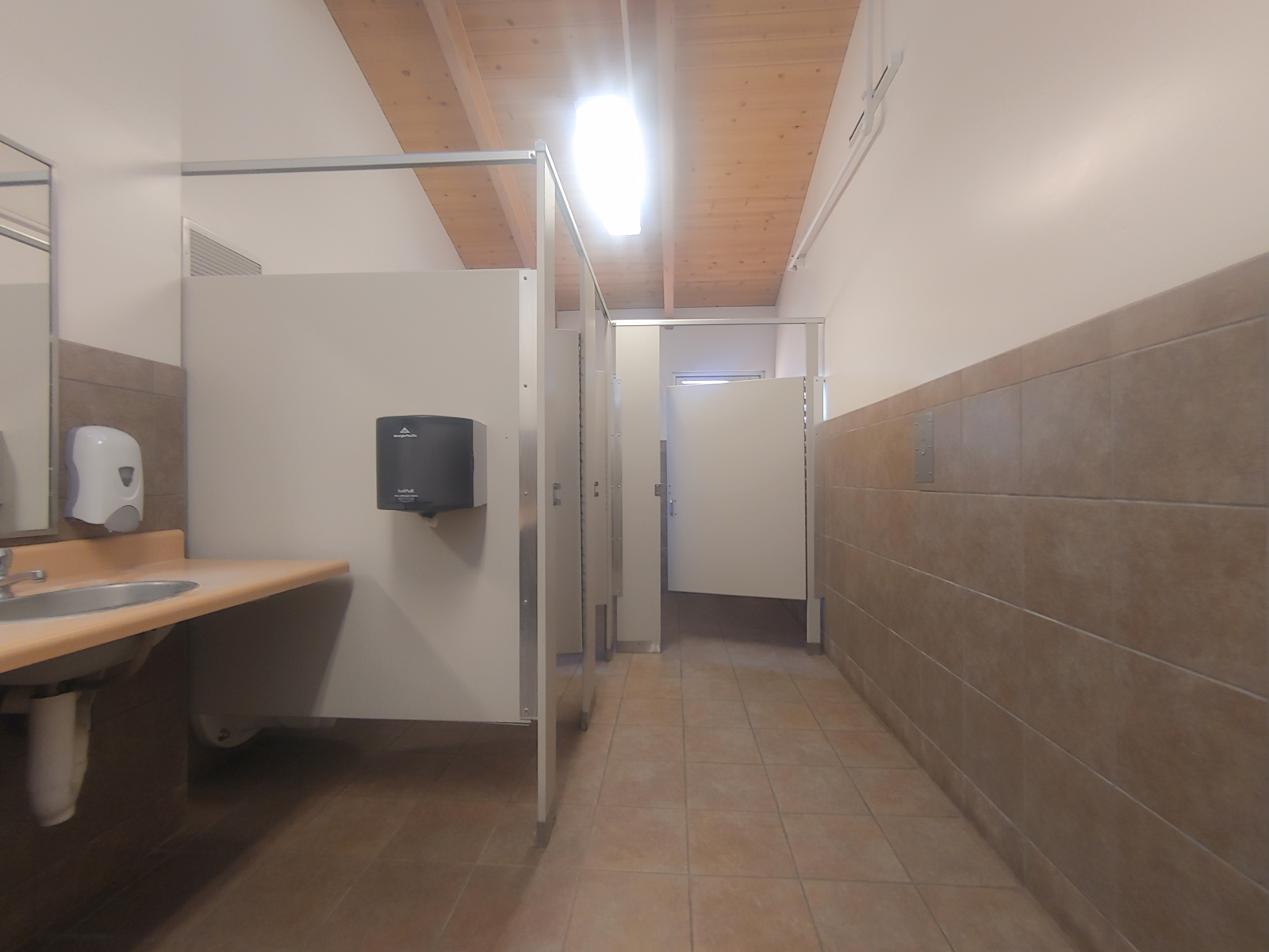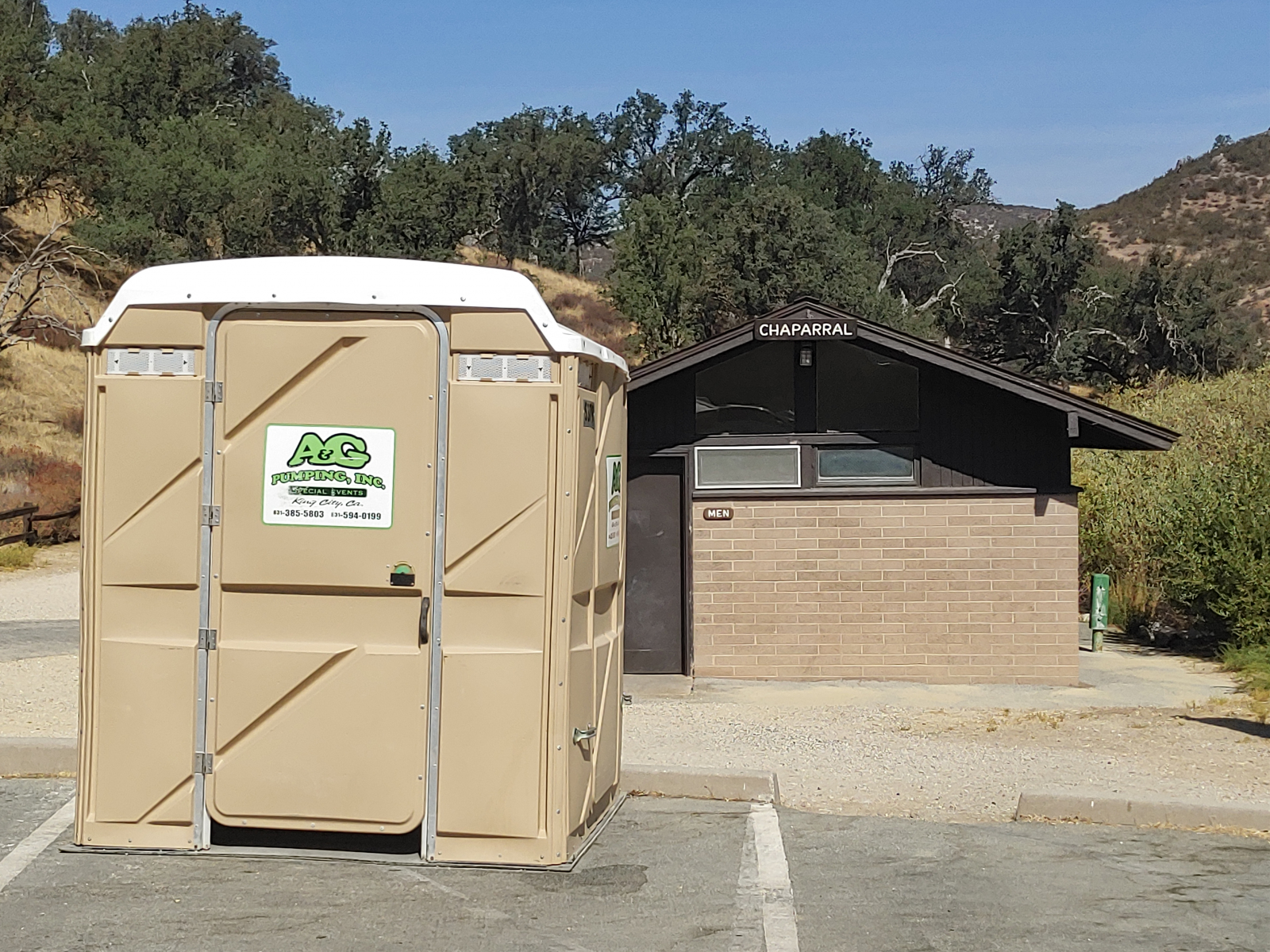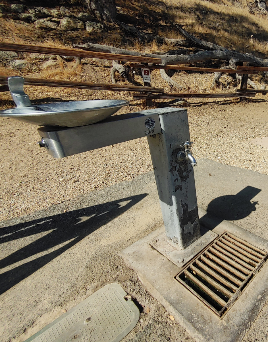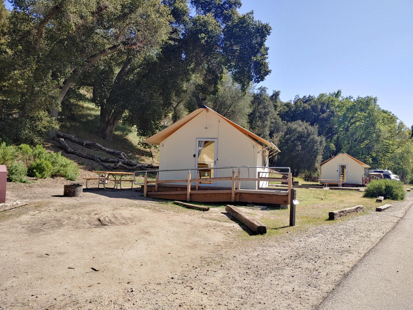 A short stroll from the campground store is a California Condor viewing area with two sets of binoculars on a paved platform, and one is wheelchair accessible. A bench is feet away. The campground store has a designated handicapped parking spot next to an accessible portable toilet. One flush toilet is accessible in the campgrounds with a larger stall and grab-bars, but currently, the building does not have a ramp to get inside. (We set up wooden boards when visiting.) Shower facilities at the park are not accessible.