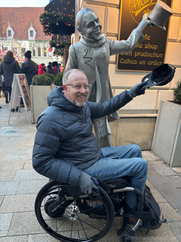 We stayed in the Hotel Maximillian, which is a boutique hotel located in the Jewish Quarter and just a couple blocks from the Old Town Square. It was a lovely and funky hotel with great accessibility. The only issue was that they did not have a decent shower chair. We provided this feedback so hopefully they will have one soon! Be sure to ask. Our reservation included breakfast, which was wonderful. We had also arranged transportation from the hotel, but you can just use Uber – it would be much less expensive.