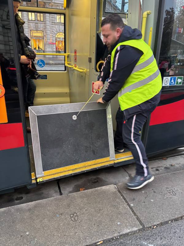 While there, we discovered an app called Ivie Vienna. This app contained all of the major sights to see as well as their accessibility features. As we were only there for three days we had to plan carefully, and this app helped us to do this as we could select the places we wanted to go and see just those places on a map. We were able to group things together that were geographically close to each other, and we used Google Maps to navigate. We used the subway as well as the tram and had great experiences. We never had need for the bus but understood that it was also accessible. The subway had easy ingress and egress. For the tram, the driver came out and lowered the ramp, and then Robert pushed a special button before our stop so that the driver knew to come out and lower it again.