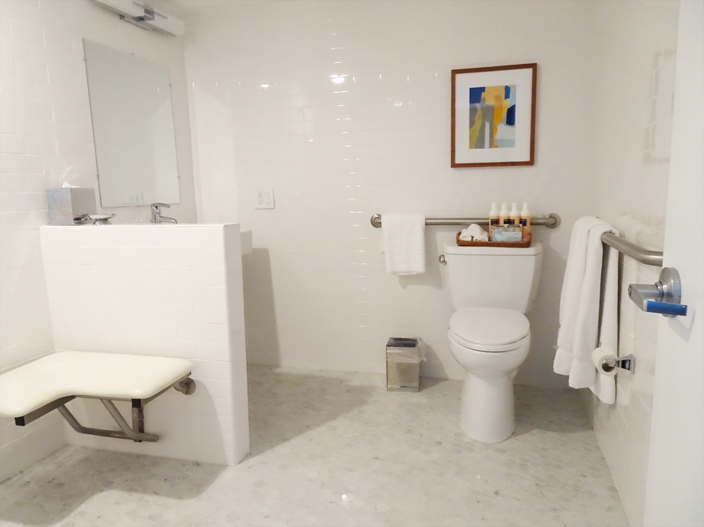 The Laurel Inn website is a great at making accessibility known and easy to book an ADA room. Room #106 is the only ADA room and has a city view with a kitchenette and roll-in shower.