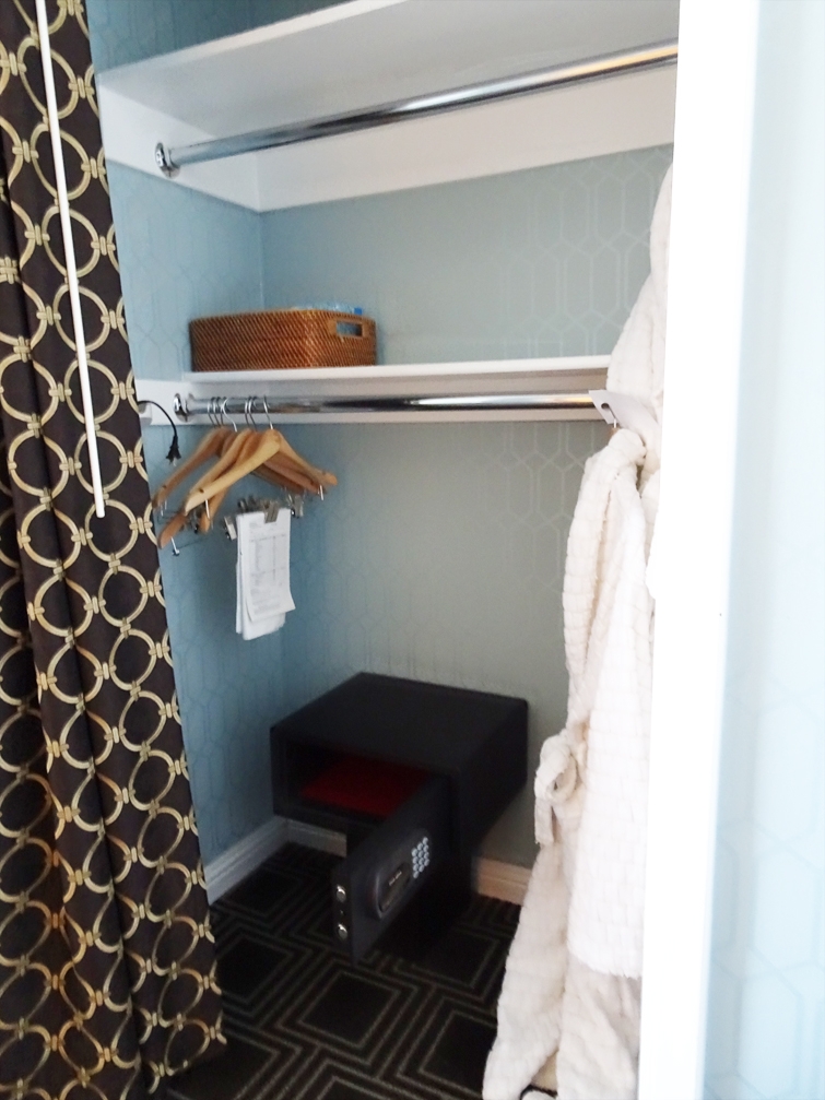 • Closet: Clothing-rack and hooks are lowered; safe is on ground.