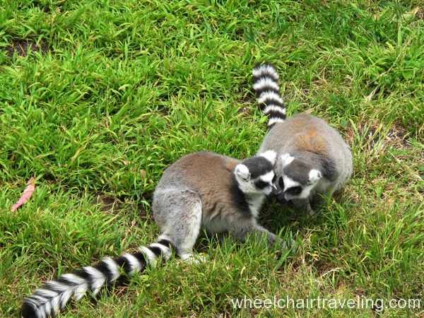 For the most part, exploring the zoo is relatively easy for those even in manual chairs because the terrain is pretty level. However, there are slight inclines all around the zoo so pace endurance wisely. Wheelchair accessible public restrooms are available throughout the park and are also noted on the zoo map. There are a couple of places to eat but the best option is the Lemur Cafe because it has a good selection of menu items from grilled foods to pizza to soup and salads.