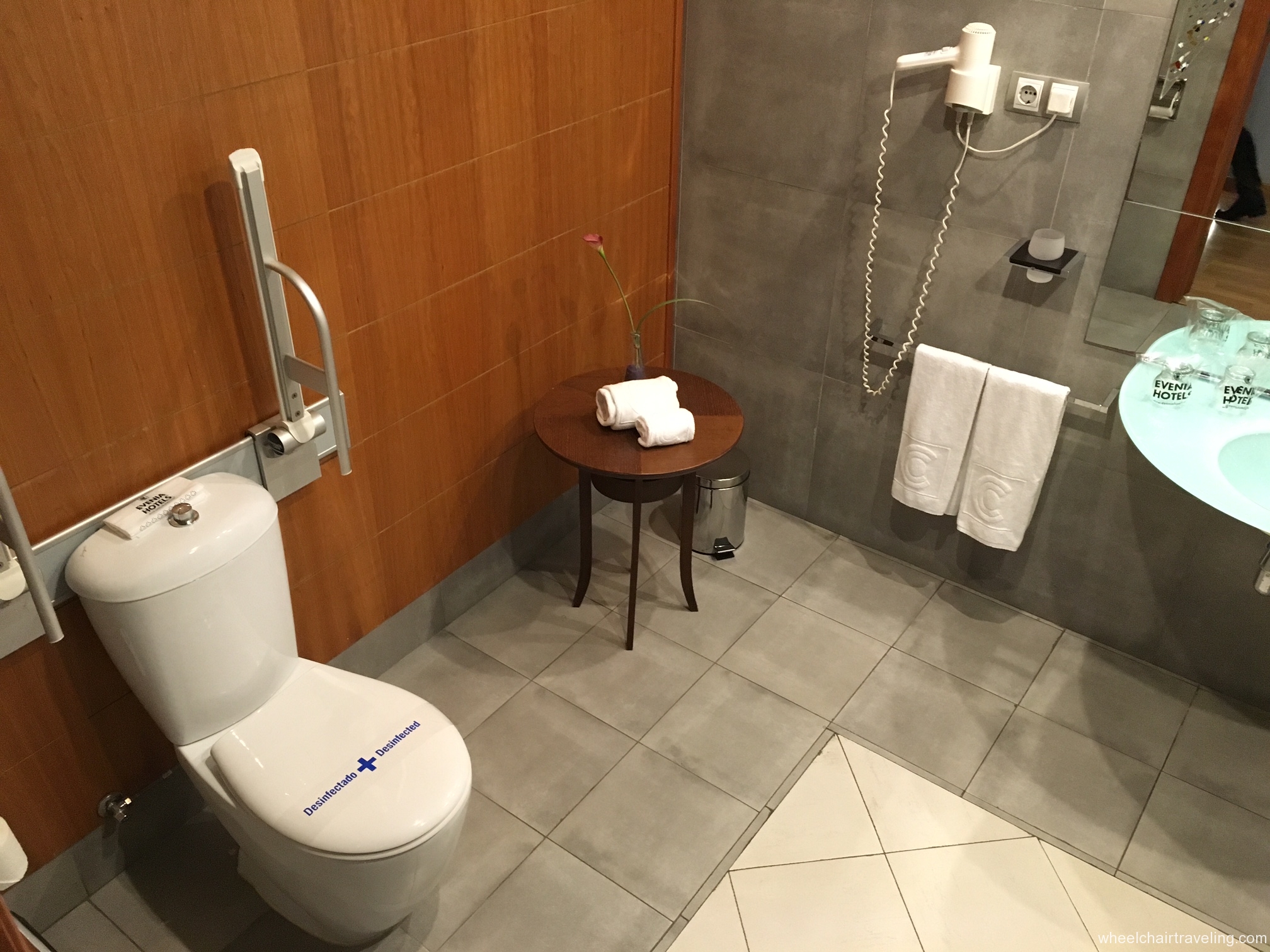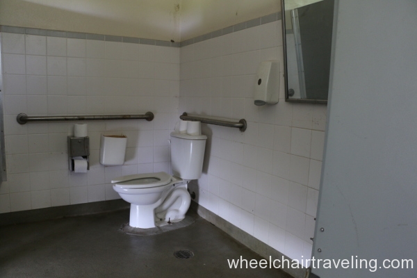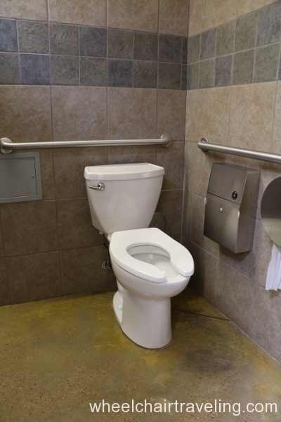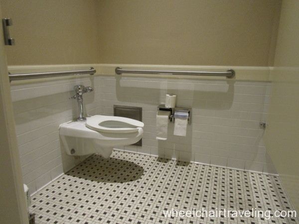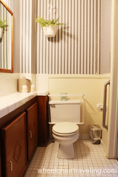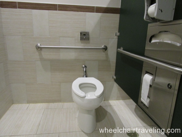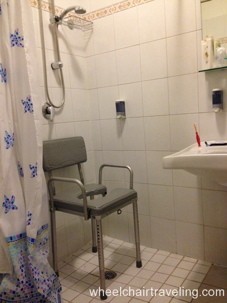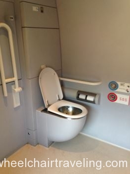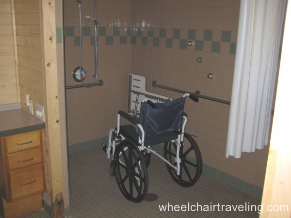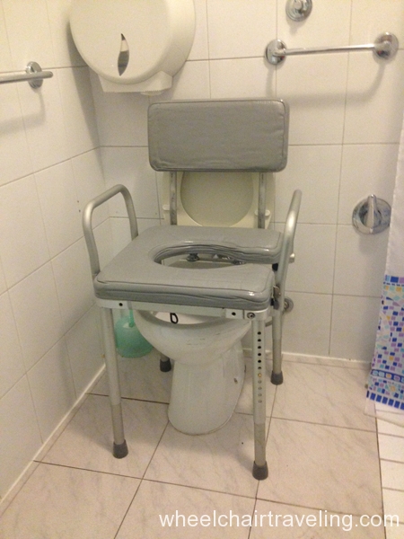 - Toilet: Located in the corner with grab-bars. A side transfer from a wheelchair is possible.