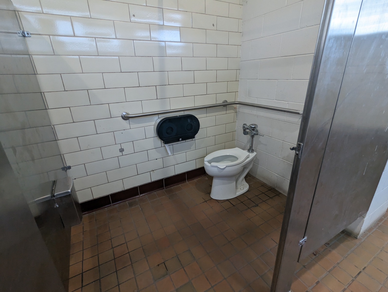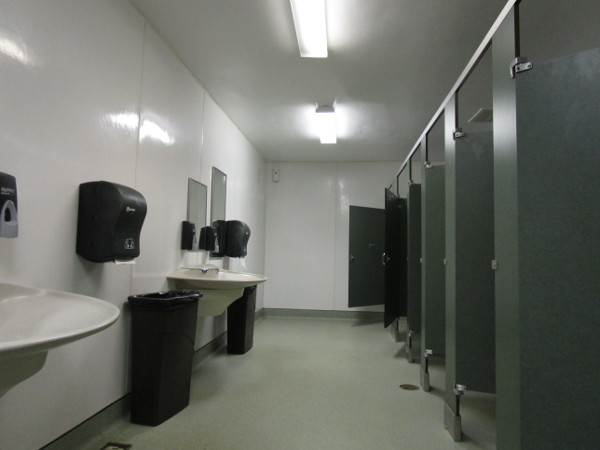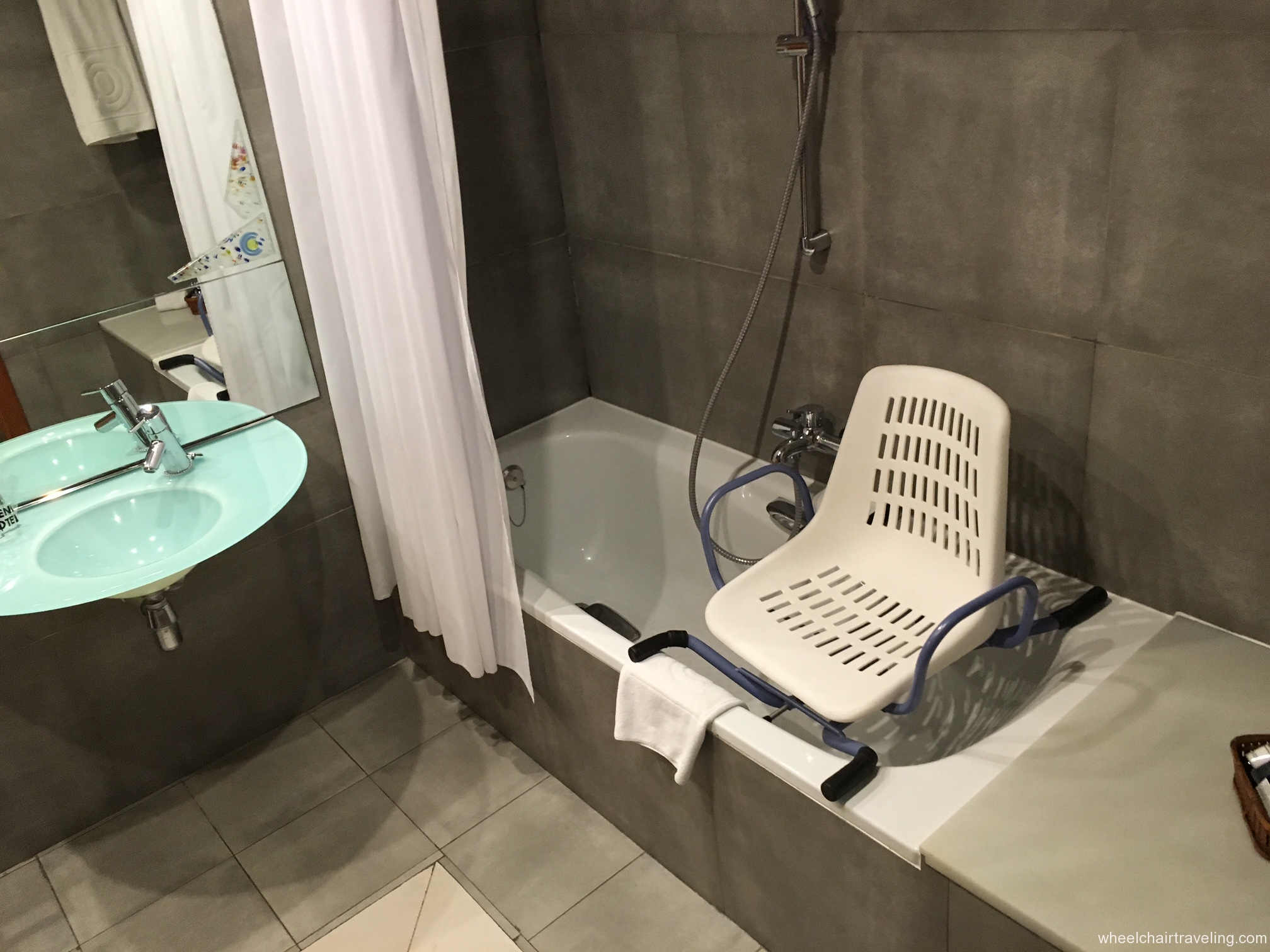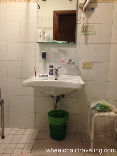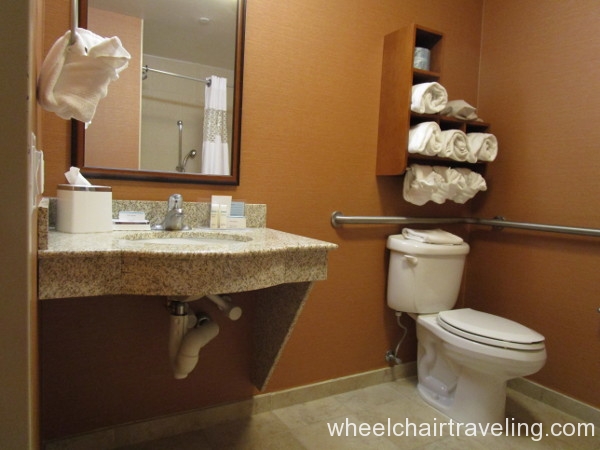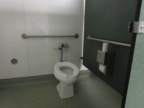 - Toilet: Located in the corner with grab-bars. A side transfer from a wheelchair is possible.