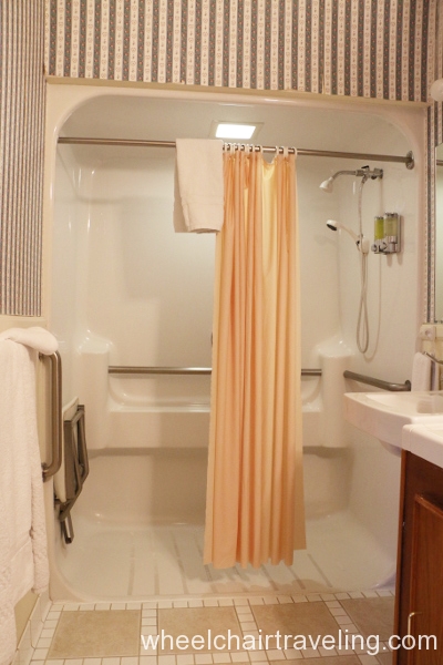 There are 5-6 rooms that have been modified and designated for ADA access. Two of these rooms are in the main building, on the first floor (poolside), with have a king bed and a roll-in shower.