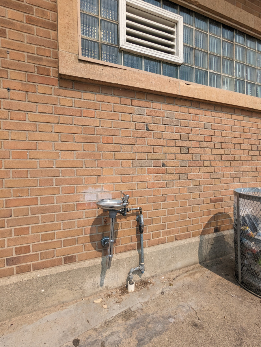 - Sink: A roll-up sink with little counter space. A shelf is located above the toilet.