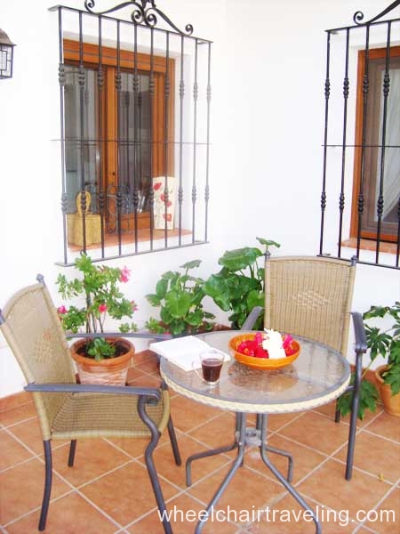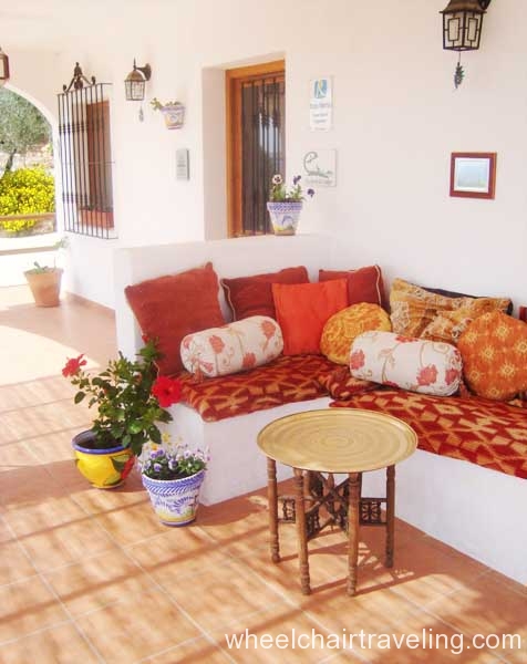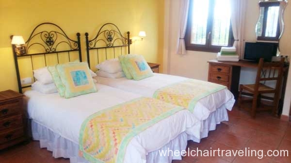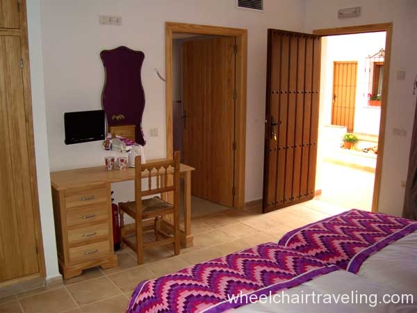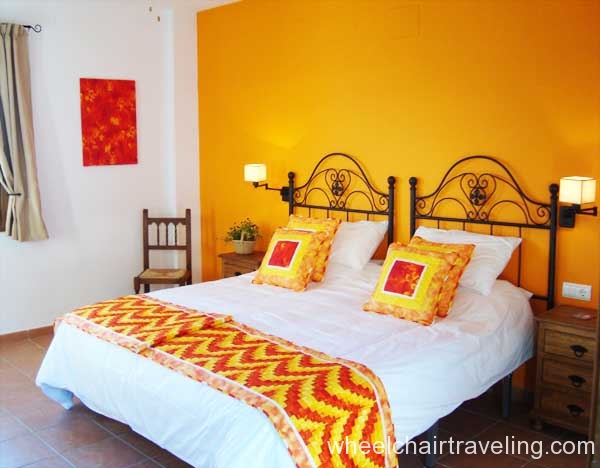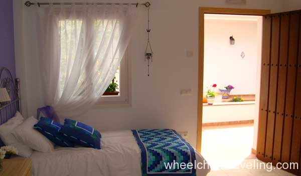The 4 large bedrooms that can accommodate a total of 8 people leads off the internal courtyard and have views of the courtyard and the olive groves. Each bedroom is named after a season with a corresponding color theme and has a roll-in bathroom with a shower bench, hand-held shower nozzle, and grab-bars. All towels are provided.