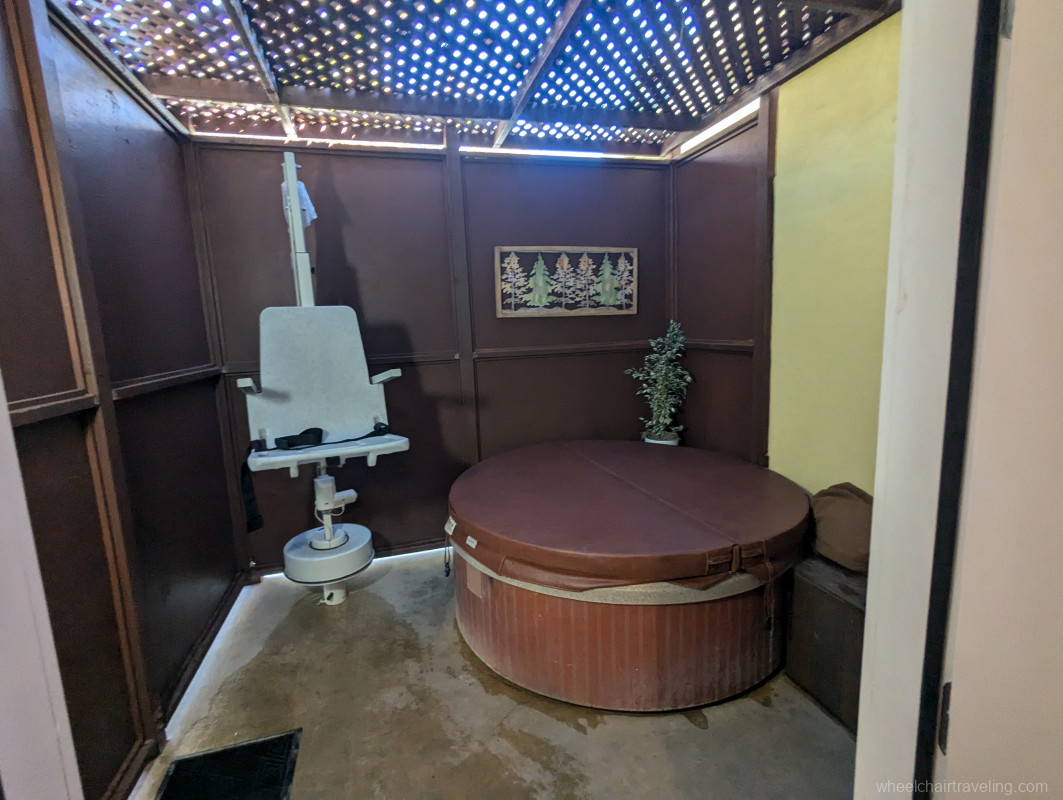 Sycamore Mineral Springs places a strong emphasis on wellness, offering several amenities for relaxation and rejuvenation. The resort features a private accessible mineral hot tub at the spa, which includes a lift for guests with mobility challenges. This secluded tub is set in a peaceful environment surrounded by lush greenery, offering a tranquil and restorative experience. Unlike the hillside tubs, which require stairs, this hot tub provides a fully accessible way to enjoy the resort’s famous mineral waters.