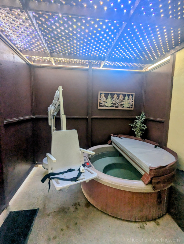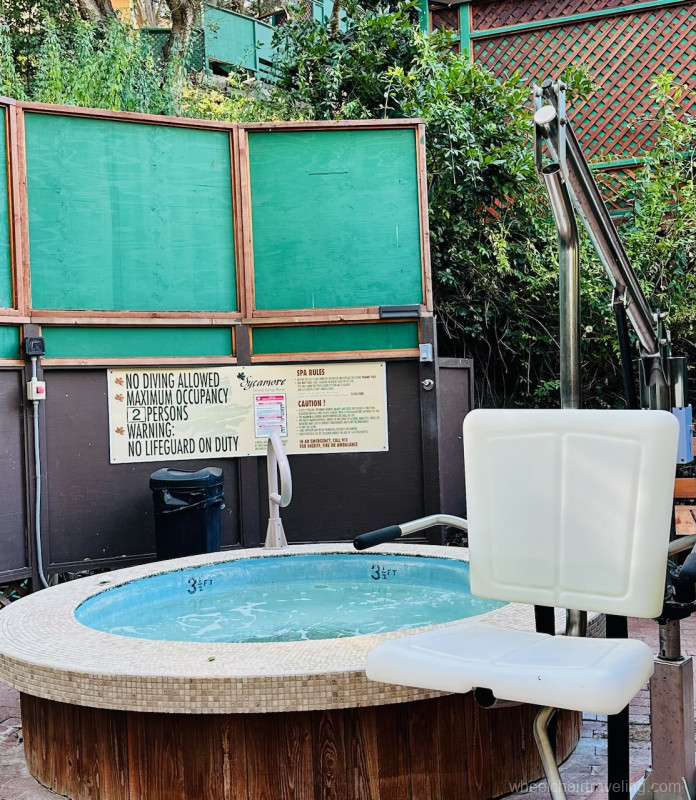 Sycamore Mineral Springs places a strong emphasis on wellness, offering several amenities for relaxation and rejuvenation. The resort features a private accessible mineral hot tub at the spa, which includes a lift for guests with mobility challenges. This secluded tub is set in a peaceful environment surrounded by lush greenery, offering a tranquil and restorative experience. Unlike the hillside tubs, which require stairs, this hot tub provides a fully accessible way to enjoy the resort’s famous mineral waters.